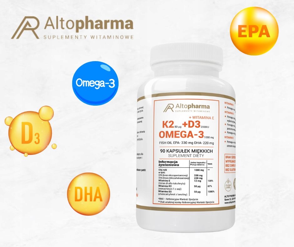 - БЕЗОПАСНАЯ ДОЗА — в каждой капсуле Altopharma® содержится 50 мкг > витамин K2 (менахинон-7 Bacillus subtilis natto), 50 мкг (2000 МЕ) витамин D3 (холекальциферол из ланолина), 12 мг витамин Е (d-альфа-токоферол) li>
