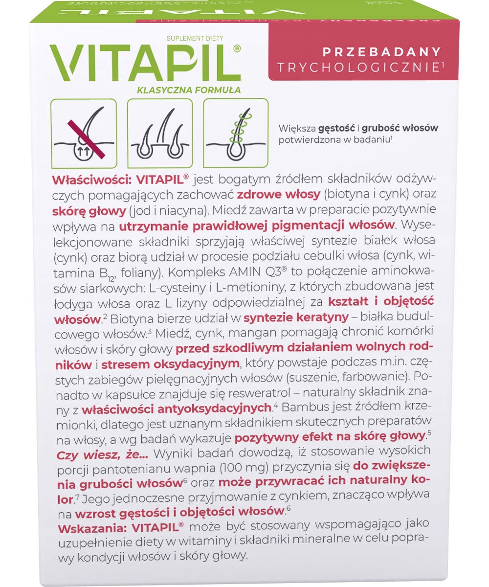 1 Опрос потребителей, проведенный с 23 июля по 6 сентября 2014 года с участием 247 тестировщиков. Подробнее на https://vitapil.pl/wyniki-badan-konsumenckich-polki-o-wlosach-vitapil.