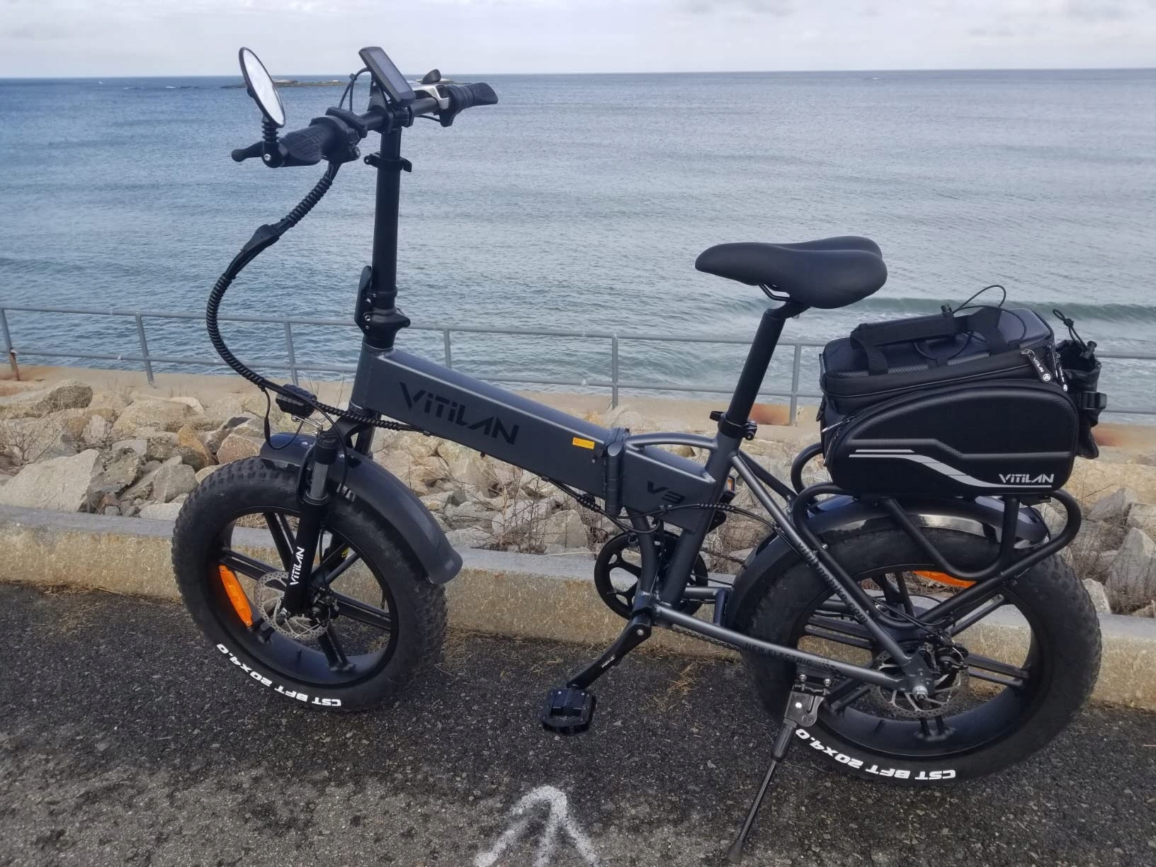 Благодаря устойчивым к проколам шинам CST 20*4.0 дюйма и защищенной передней амортизационной вилке V3 может доставить вас в самые разные места: центр города, каменистые дороги, пляжи, заснеженные пригороды и даже городские джунгли. Электронный автомобиль V3 построен на раме из алюминиевого сплава 6061 и имеет грузоподъемность до 330 (150 кг).