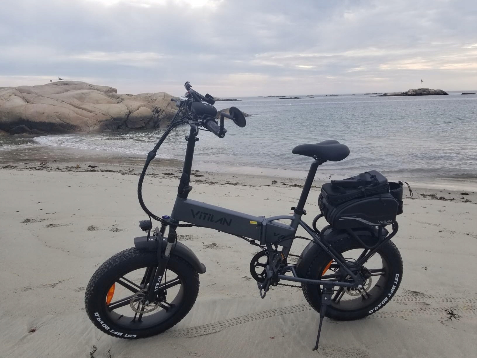 📳【20*4,0-дюймовые шины CST Fat и складная рама】V3 оснащен 20*4,0-дюймовыми устойчивыми к проколам шинами CST Fat и высококачественной передней амортизационной вилкой, позволяющей добраться до практически неограниченных мест: центра города, каменистых дорог, пляжей, заснеженных пригородов и даже городских джунглей. Электромобиль V3 extra имеет раму из алюминиевого сплава 6061, которая складная и подходит для небольших помещений, таких как квартиры и автомобили.