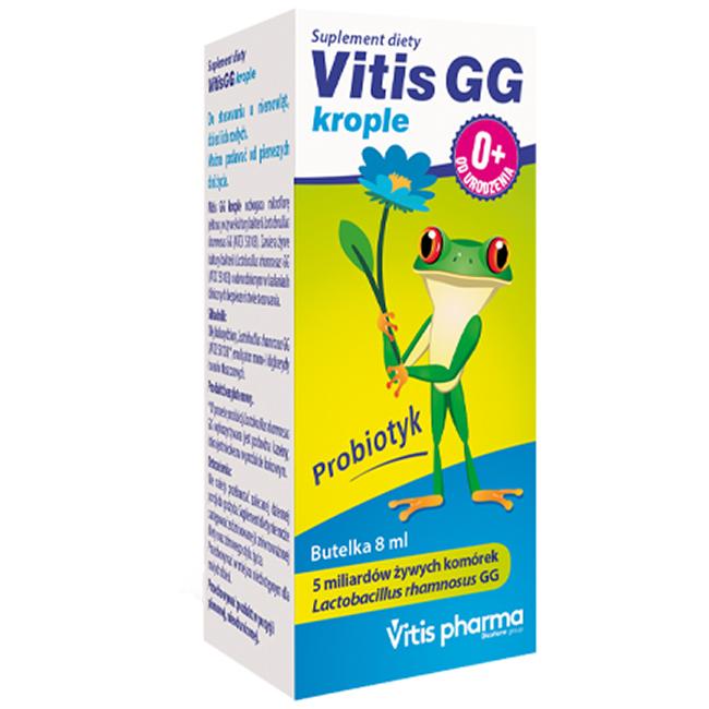 Vitis GG Drops - это пищевая добавка, которая обогащает кишечную микрофлору с живой культурой Lactobacillus rhamnosus GG (ATCC 53103). Эти бактерии встречаются естественным образом в пищеварительном тракте человека, устойчивы к желудочному соку и желчных кислотам и демонстрируют высокую способность придерживаться кишечного эпителия, благодаря которому они легко обитают в пищеварительном тракте. Используйте. Это значение гарантируется до даты на упаковке только для правильно хранящегося продукта. Продукт без глютена. Вы можете подавать с водой или молоком при температуре макс. Ежедневная часть потребления. Диетическая добавка не может заменить разнообразную и устойчивую диету и здоровый образ жизни. Храните в недоступном месте для маленьких детей. Полем Избегайте обнаружения продукта на тепловые источники, солнечный свет и быстрые изменения температуры. После первого открытия храните в холодильнике, используйте в течение 30 дней