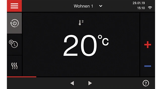 - Система предназначена для регулирования контура отопления. Прикасаясь к экрану, вы выбираете желаемую температуру в помещении. Одним движением пальца вы также можете переключить режим работы с обычного на режим «Вечеринка» («Подольше остаюсь дома»).