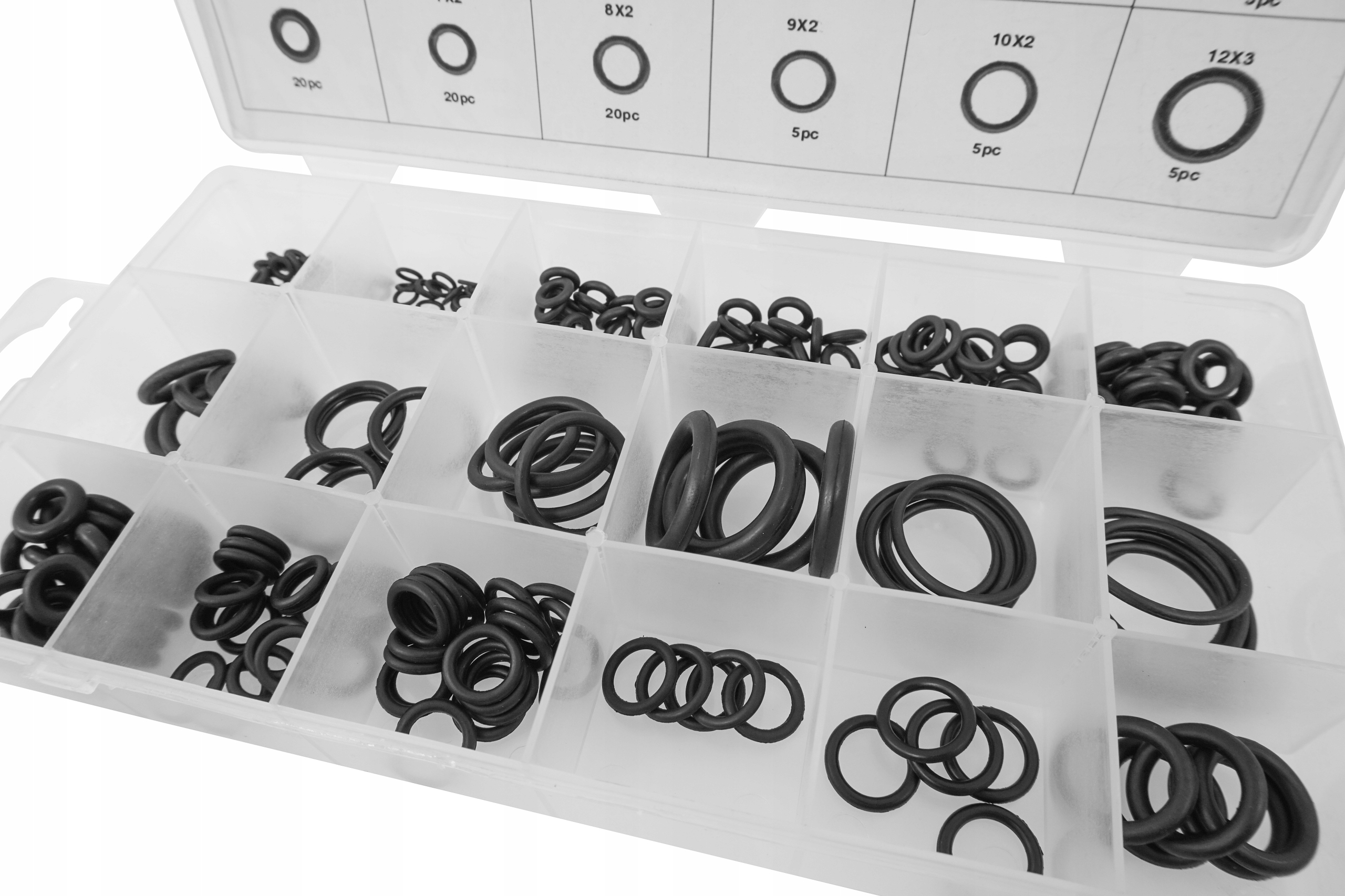 уплотнительные кольца 225 шт. Содержит смесь из 18 различных размеров. Уплотнительные кольца изготовлены из резинового устойчивости к агрессивным факторам, таким как топливо, масла и химикаты и высокая температура. Практическая упаковка обеспечивает легкий доступ к удобному размеру.