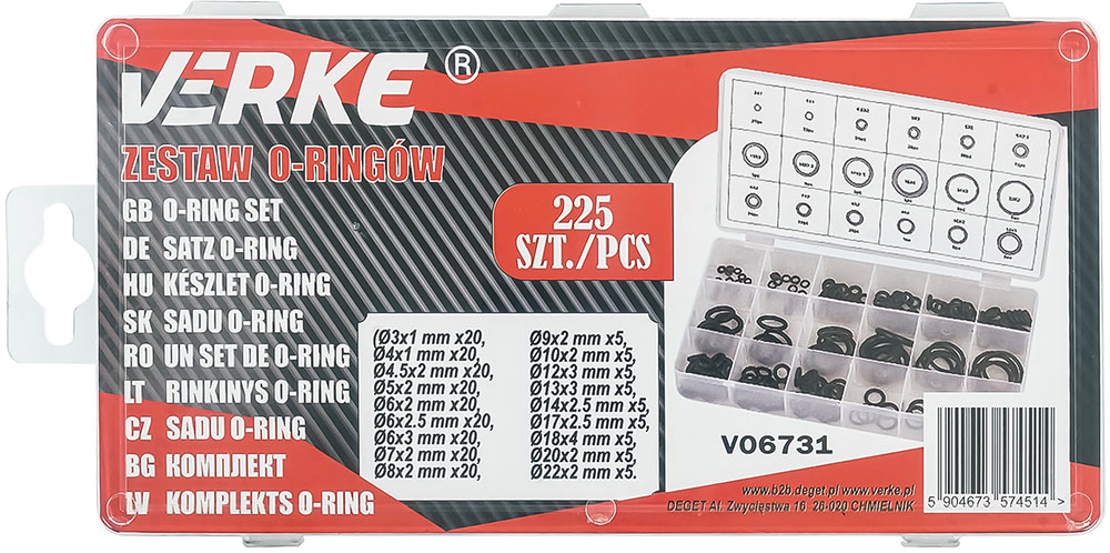Набор уплотнительных уплотнительных колец 225 шт. Благодаря разнообразию размеров, высококачественной резиновой устойчивости и сопротивления маслам и химическим веществам , набор уплотнительных колец Verke обеспечивает постоянные, эффективные соединения запечатывания в широком спектре применения, как в промышленности, так и в ремонте дома.