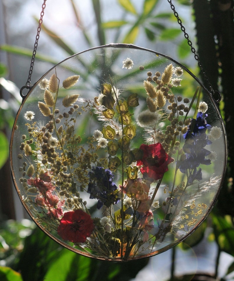 Подвески немного отличаются друг от друга, поскольку изготовлены из натуральных растений, и в природе не существует одинаковых изделий. Я стараюсь выбирать долговечные виды растений, которые можно сушить и хранить в своих крошечных окнах, чтобы вы могли наслаждаться ими как можно дольше.
