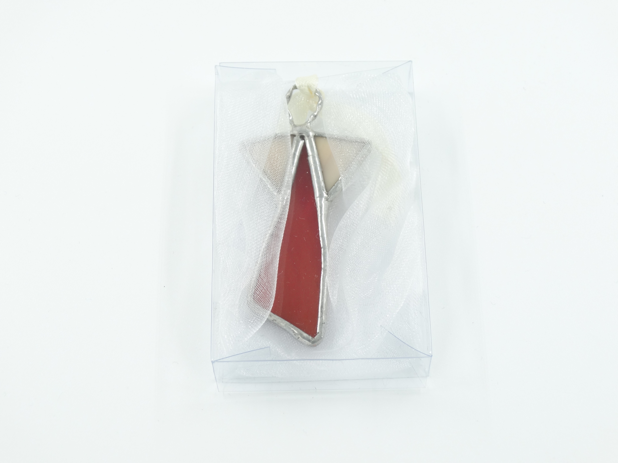 Ангел выполнен в технике Тиффани из качественного витража Спектрум. Каждый кусок стекла имеет уникальные оттенки и текстуру. Ангел упакован в прозрачную коробку ручной работы и белую органзу.