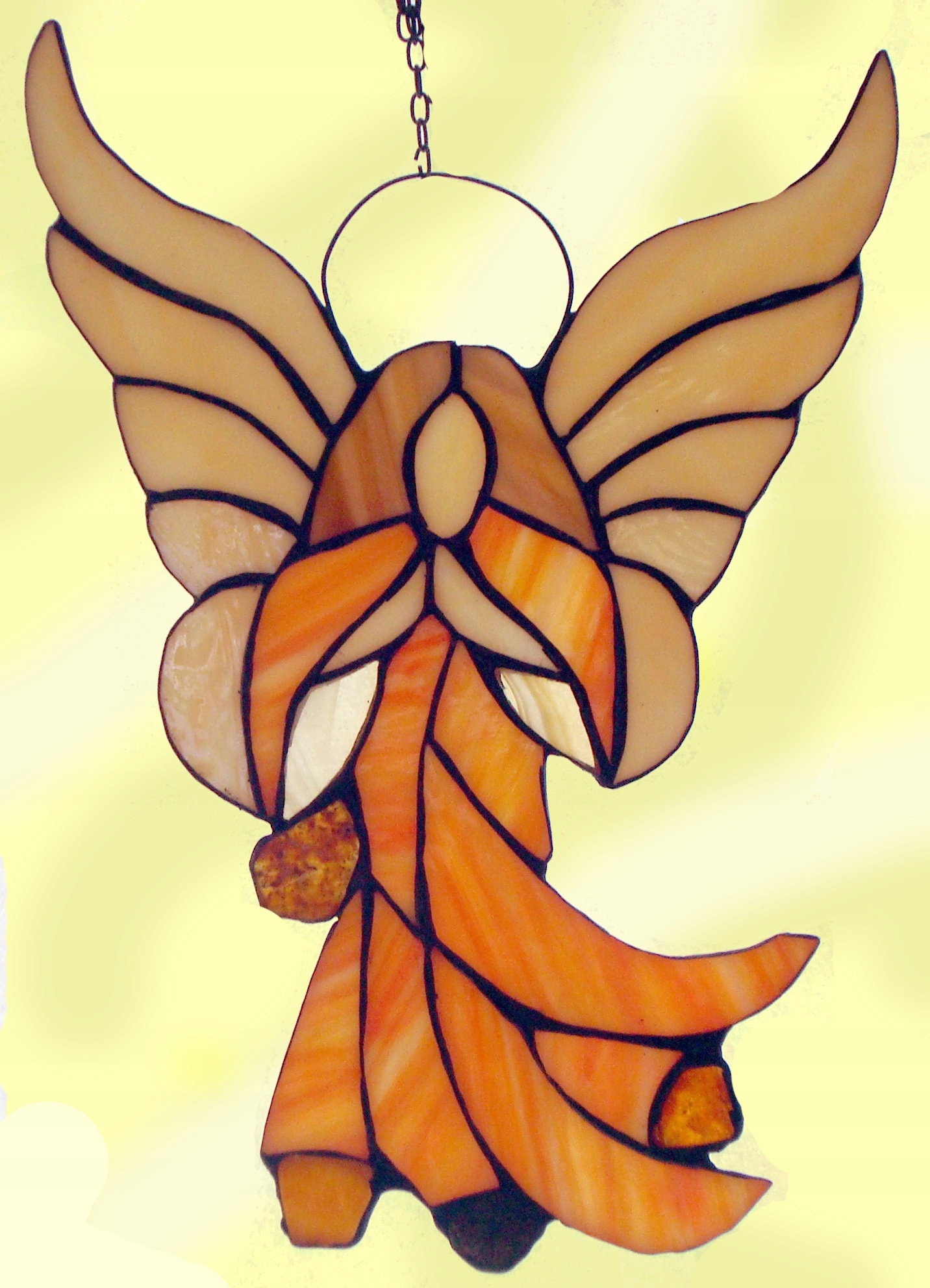БОЛЬШОЙ ВИТРАЖ АНГЕЛ С ЯНТАРЕМ