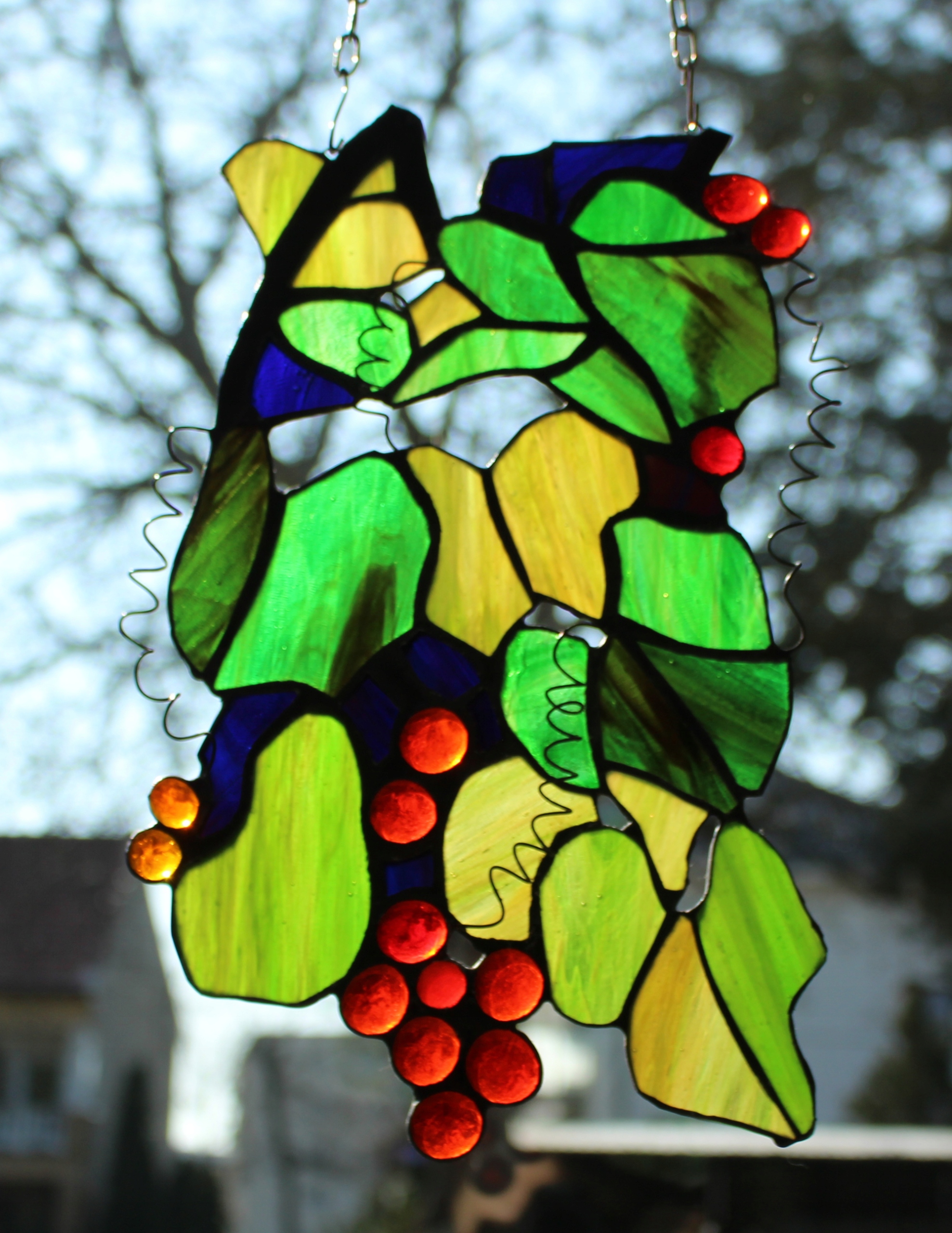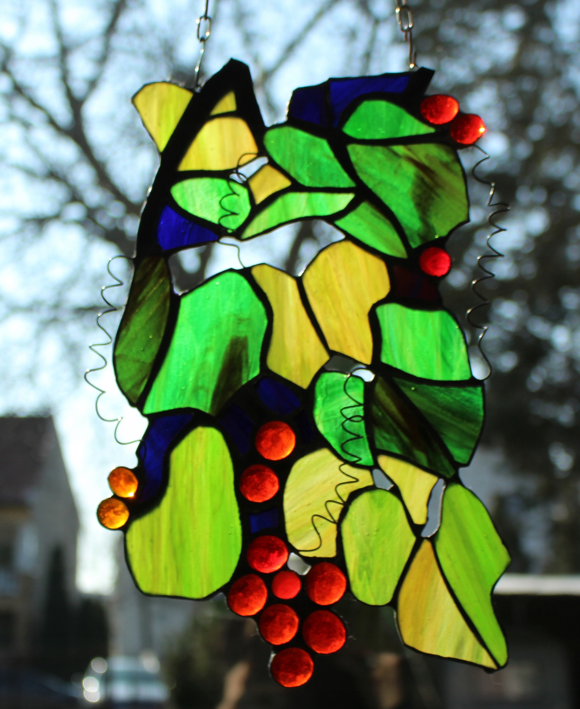 Витража тиффани витраж, красный виноград, стеклянный виноград