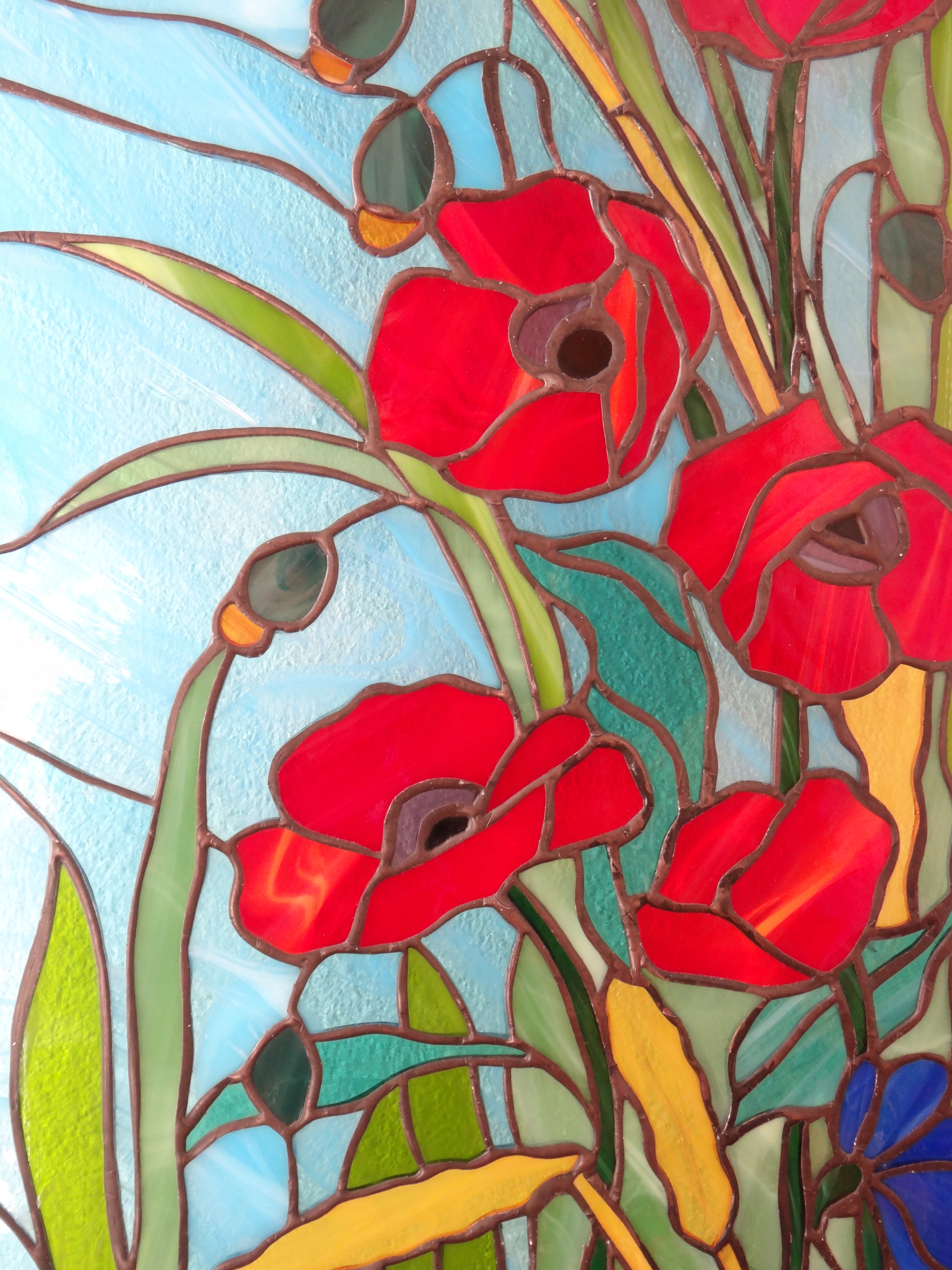 Витражное панно «Маки», витражное остекление дверей