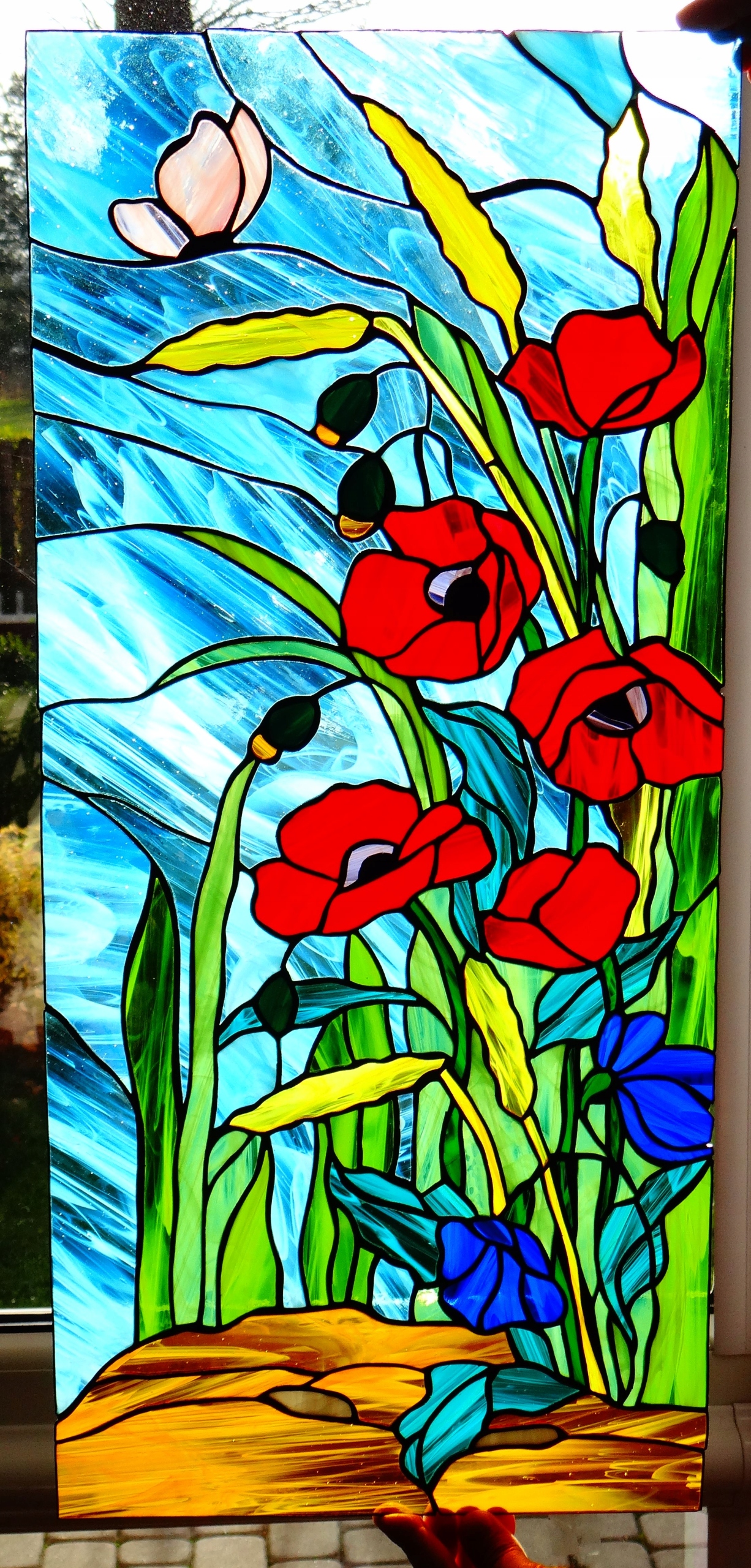 Полевые маки - витражное панно