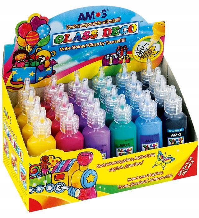 Вітражні фарби AMOS Glass Deco 22 мл 6 кольорів 24 штуки