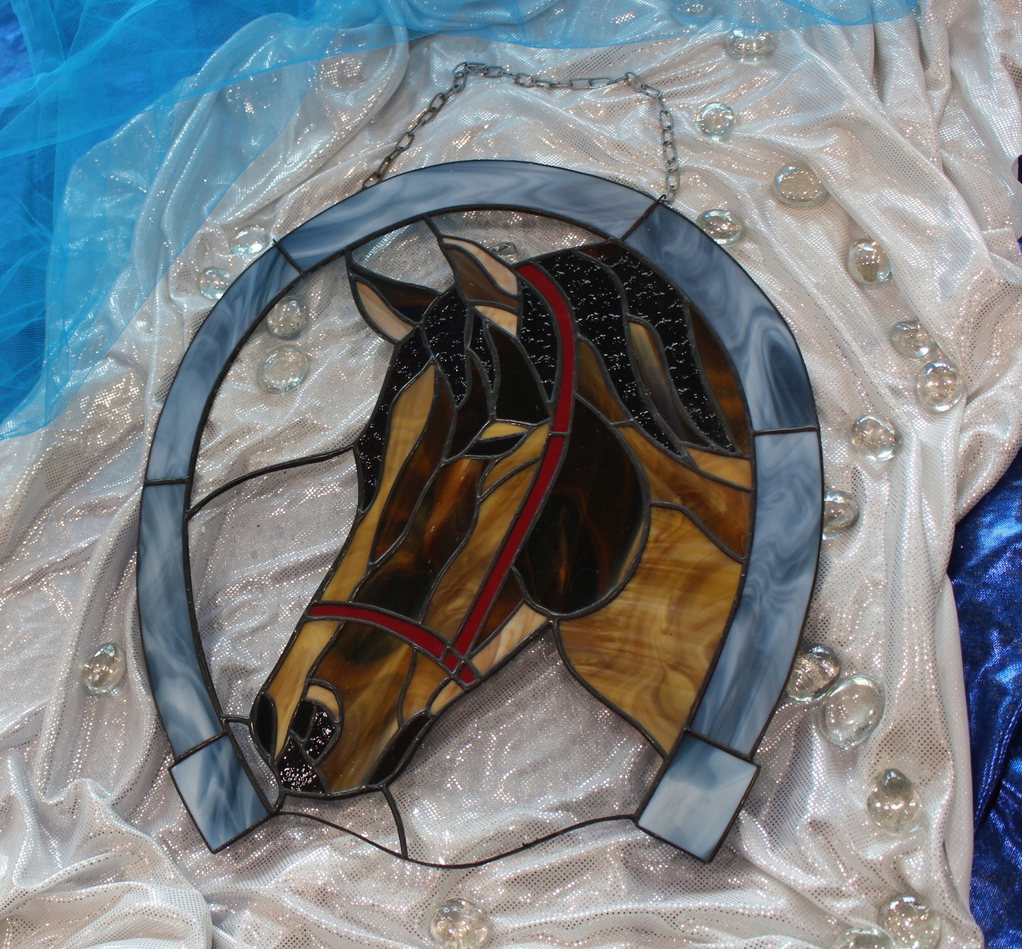 Витражная лошадь в подкове S Тиффани подарок украшения