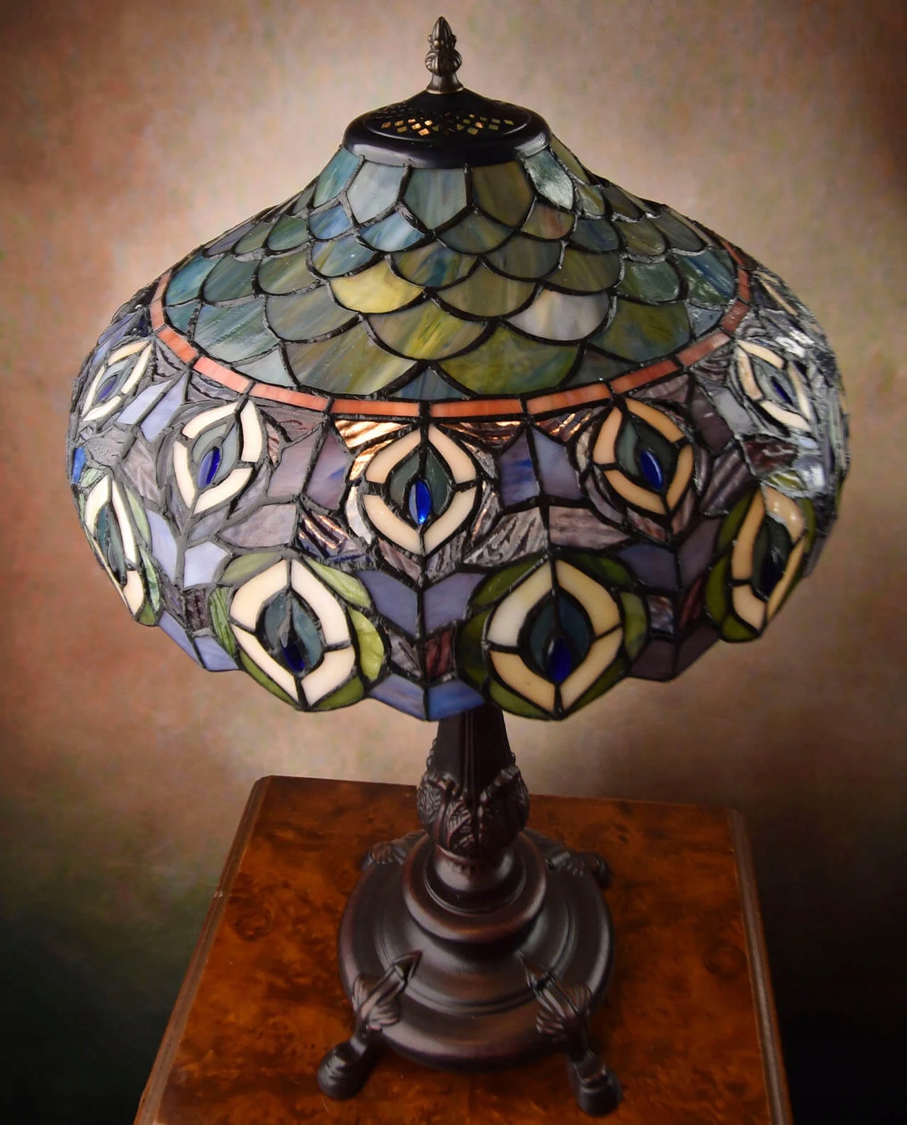 Витражные лампы в стиле печи Тиффани павлина