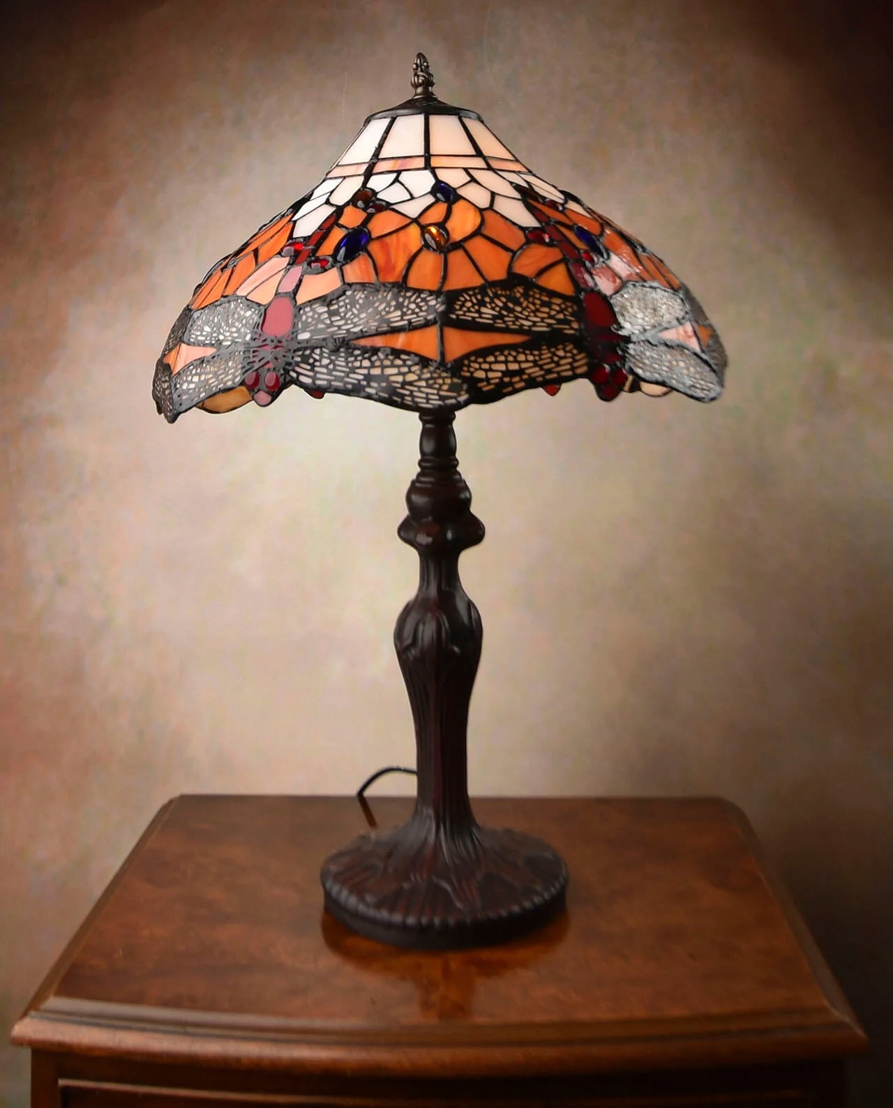 Тиффани витраж с стеклянной лампой Dragonfly Oranż