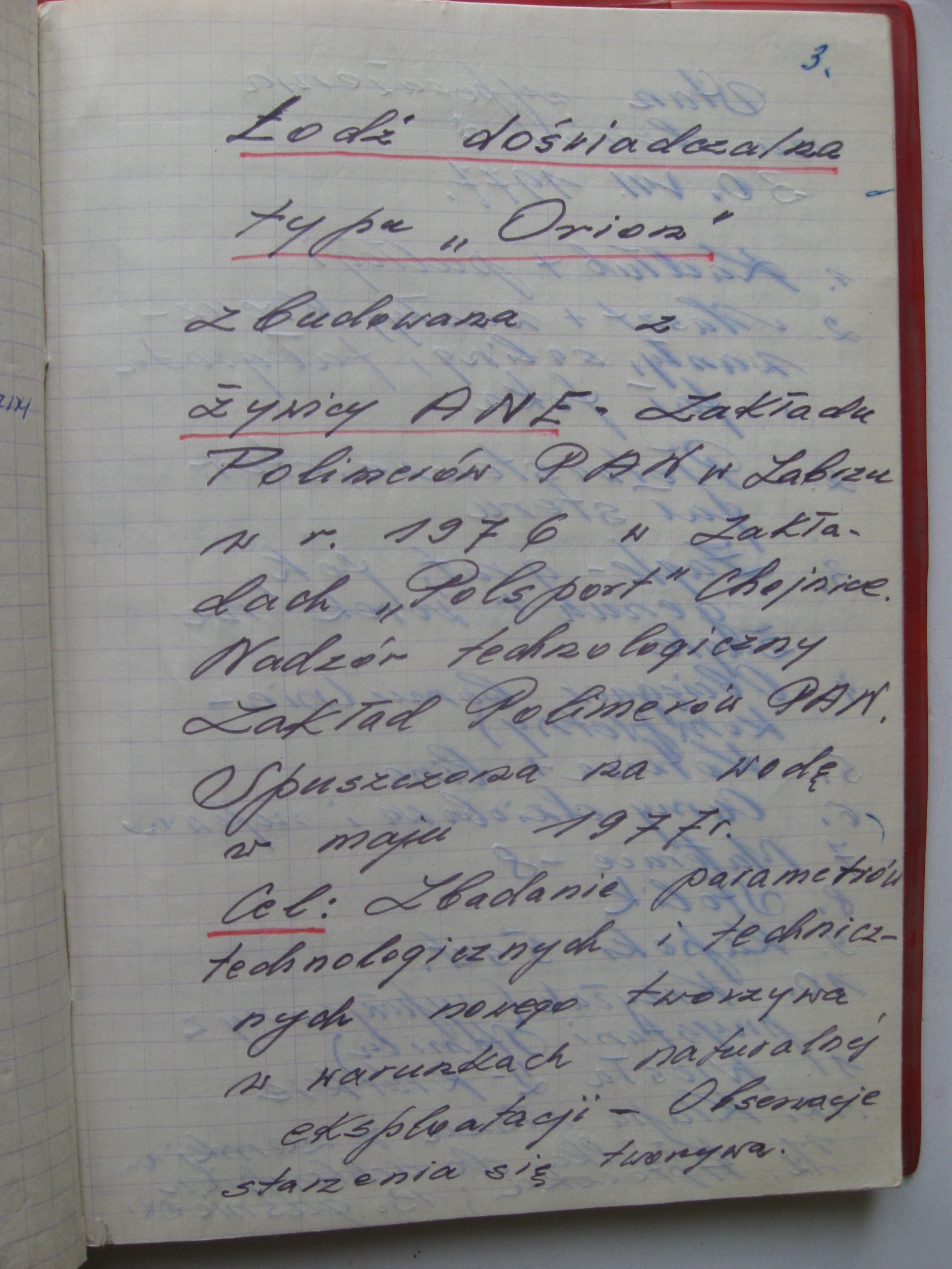 Цель процесса эксплуатации экспериментальной лодки типа «Орион», построенной из смолы АНЭ на Заводе полимеров в Забже и построенной на Забже. POLSPORT в Хойнице - как описано, цель проверки технологических параметров нового материала в условиях естественного использования.