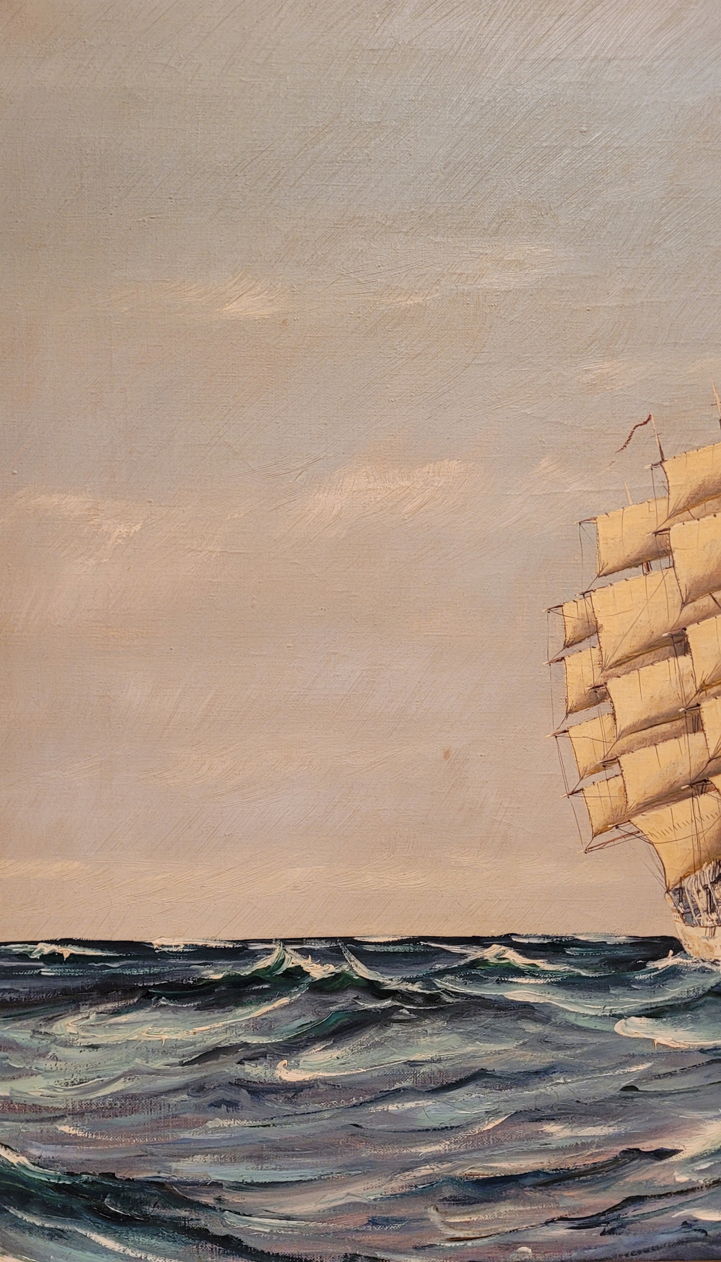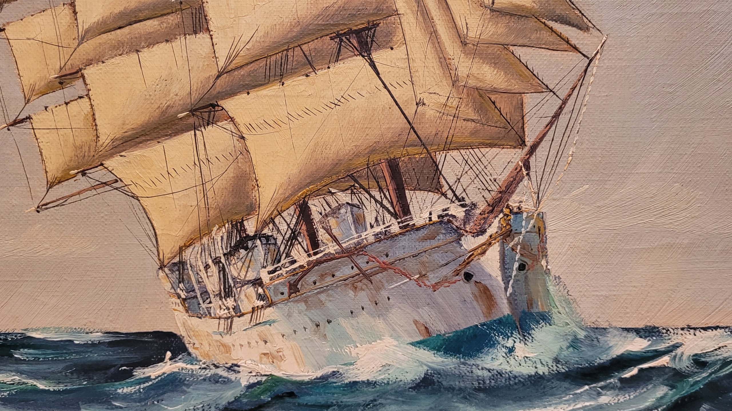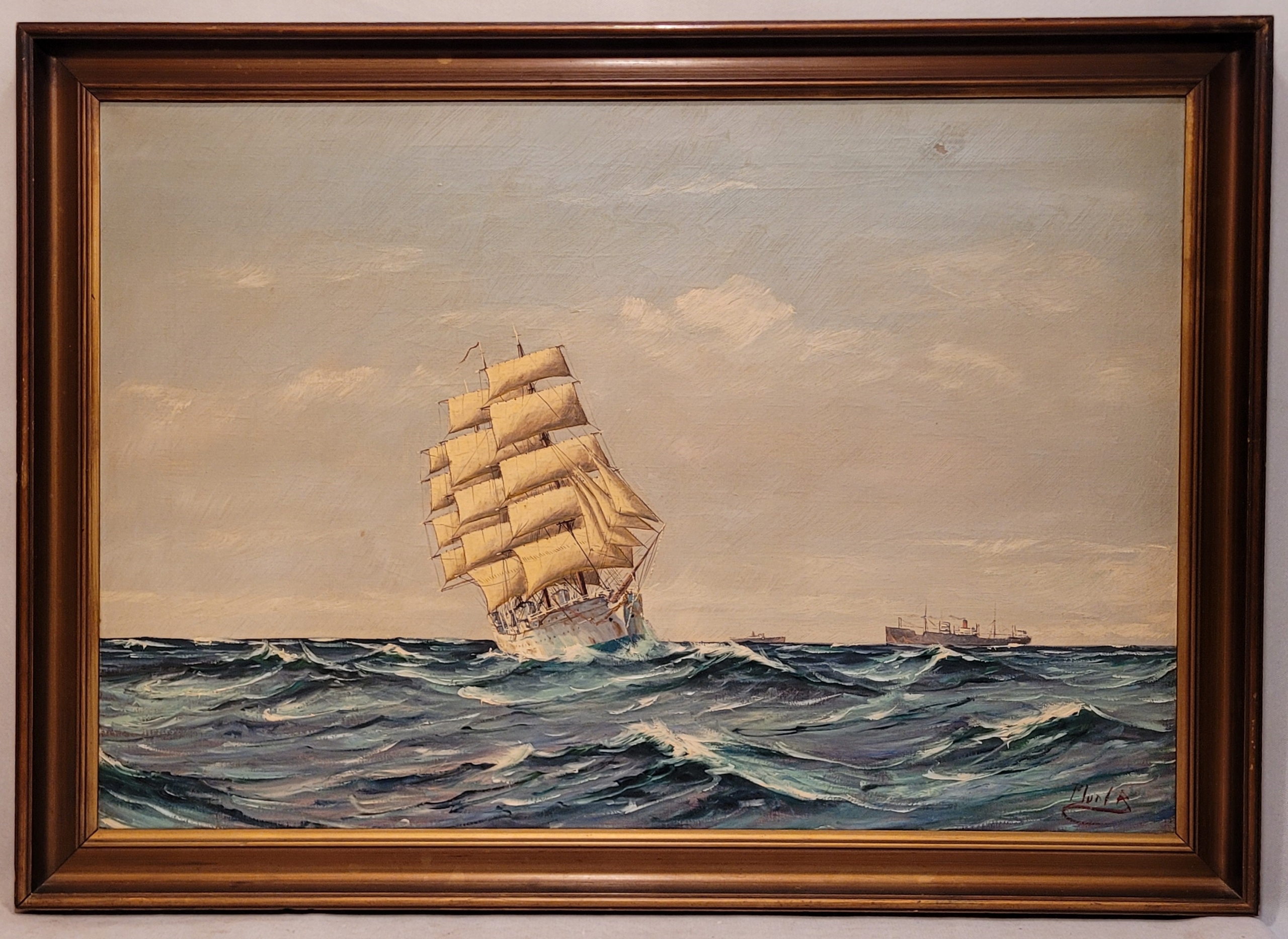 Предмет продажи - красивая, старинная картина маслом «ПАРУСНЫЙ КОРАБЛЬ».
