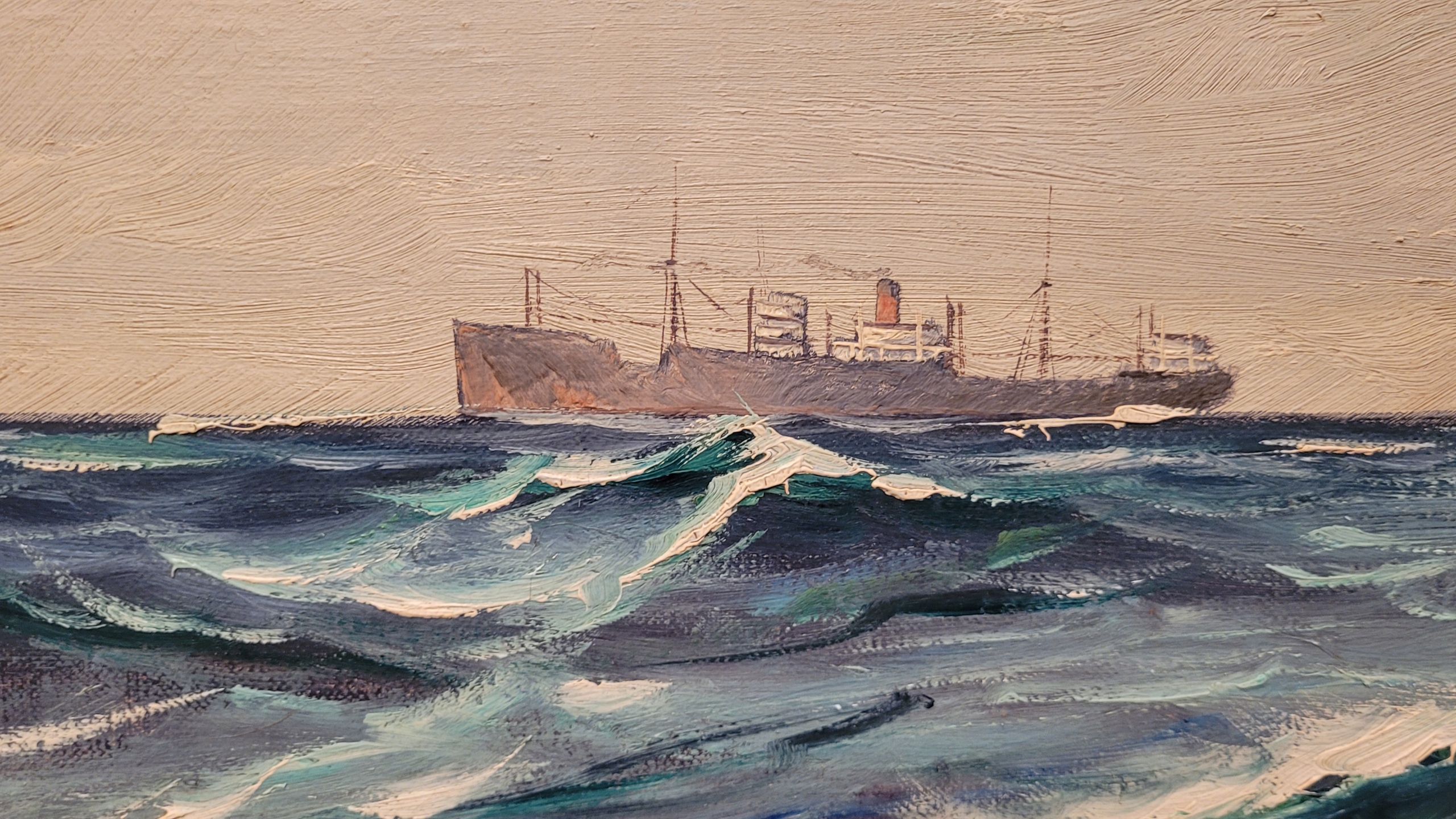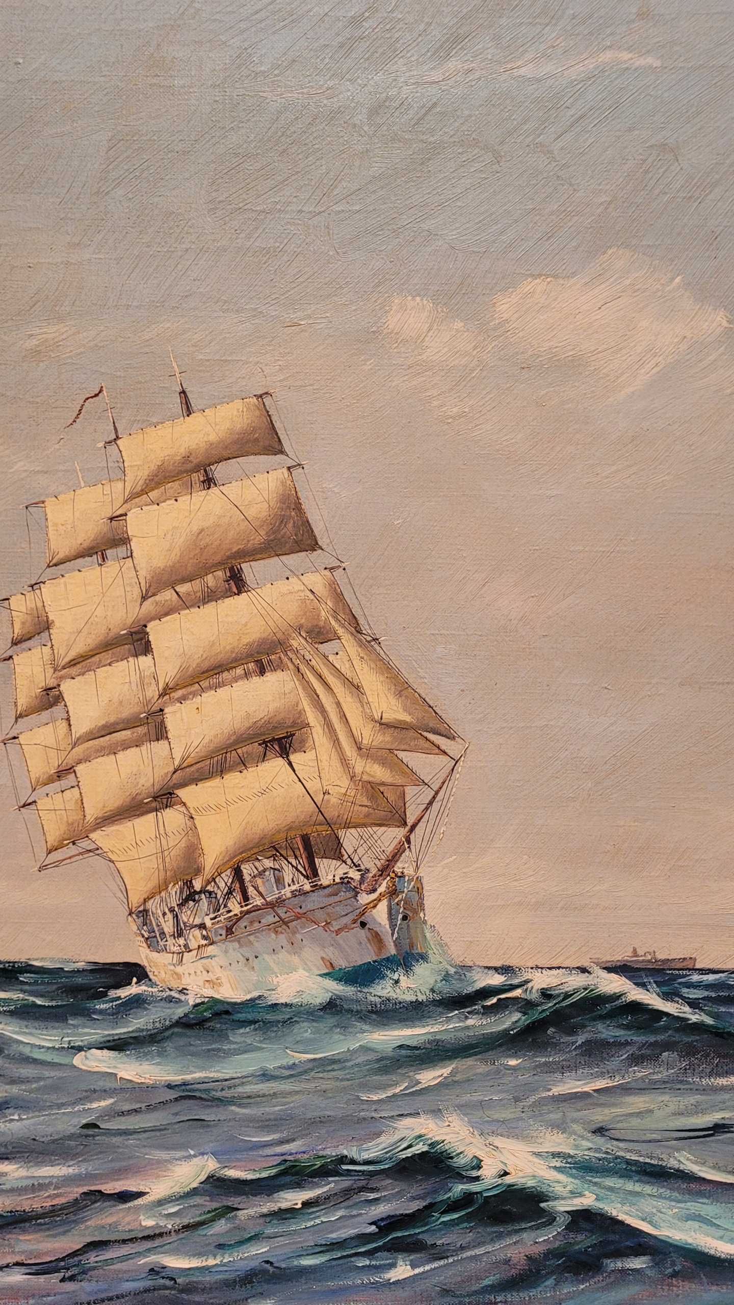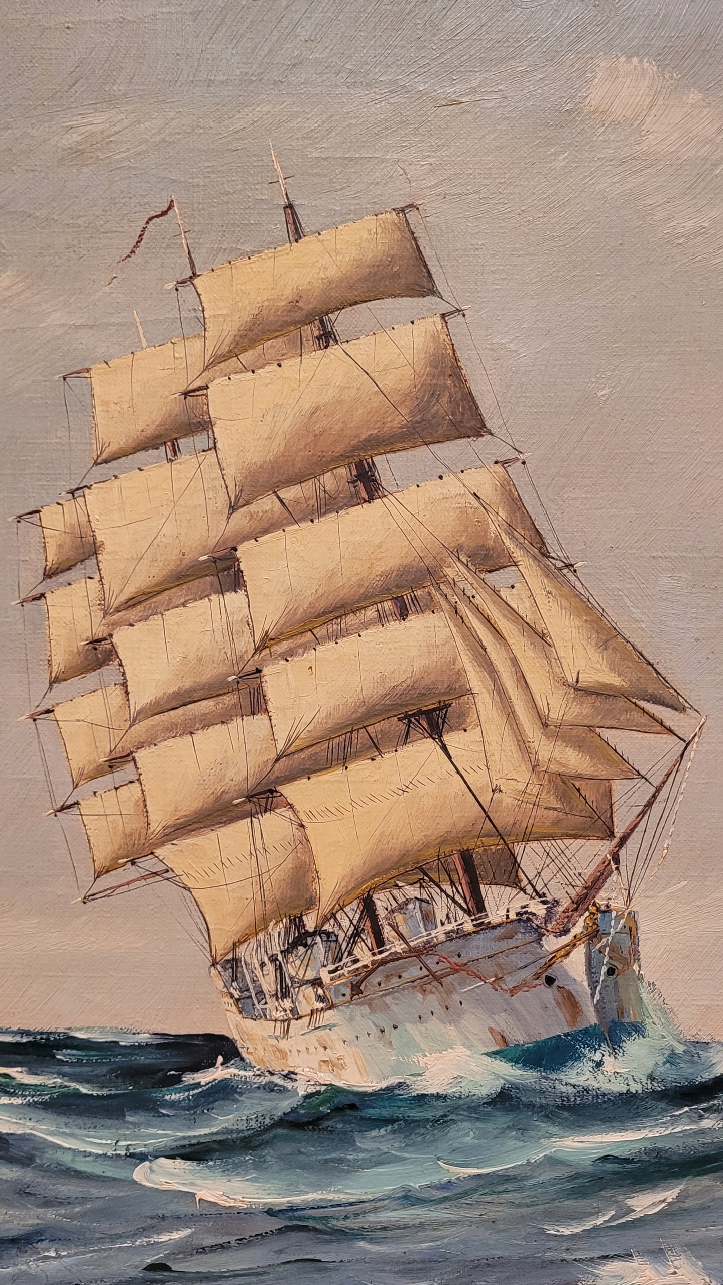 Предмет продажи - красивая, старинная картина маслом «ПАРУСНЫЙ КОРАБЛЬ».