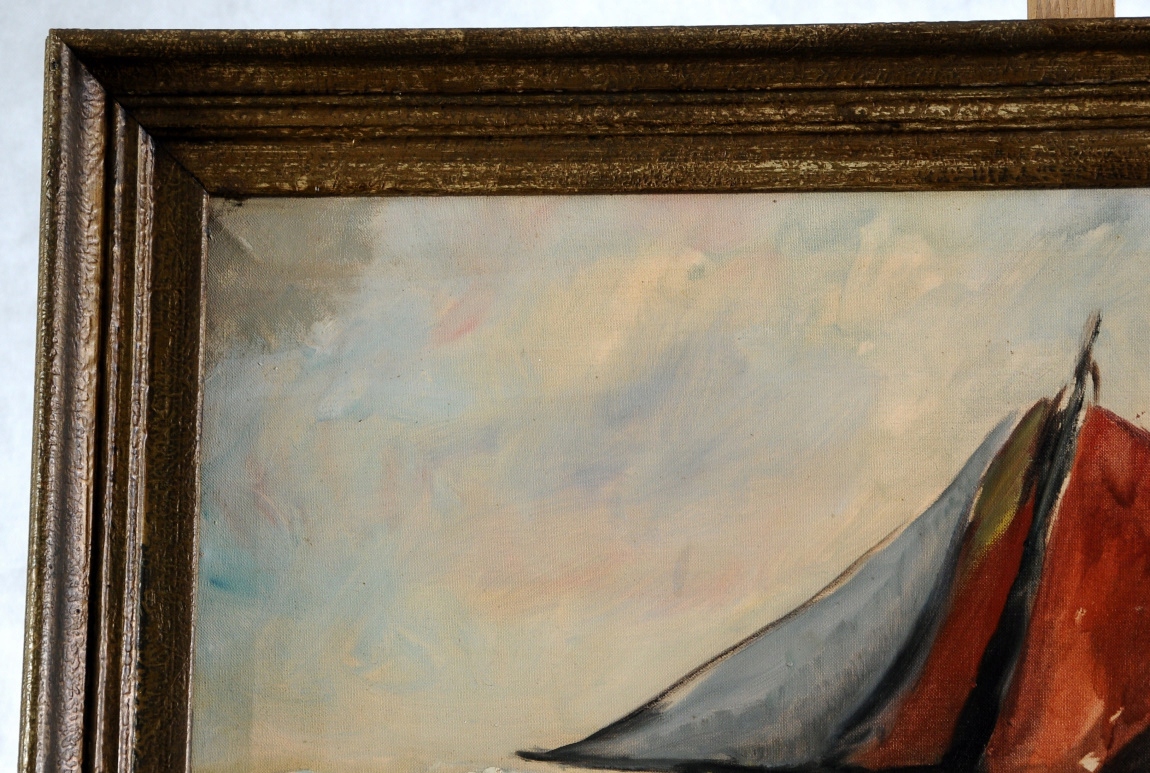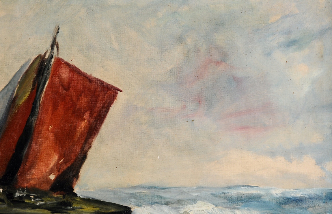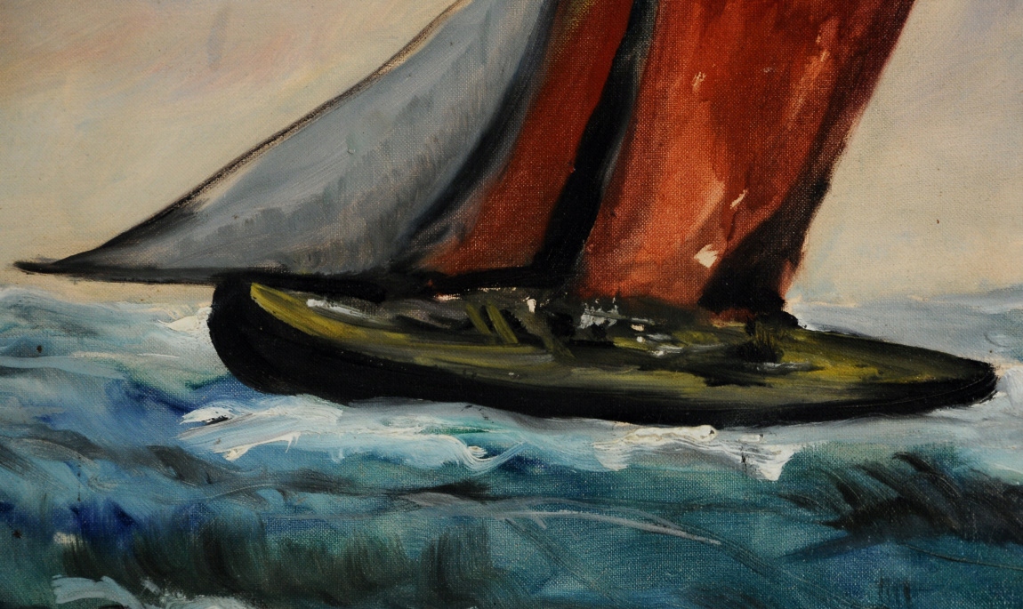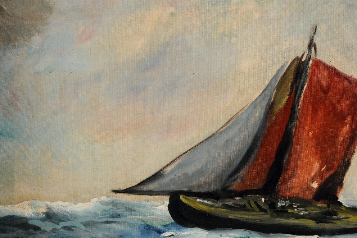Парусная лодка в море, уникальная красивая нефтяная картина!
