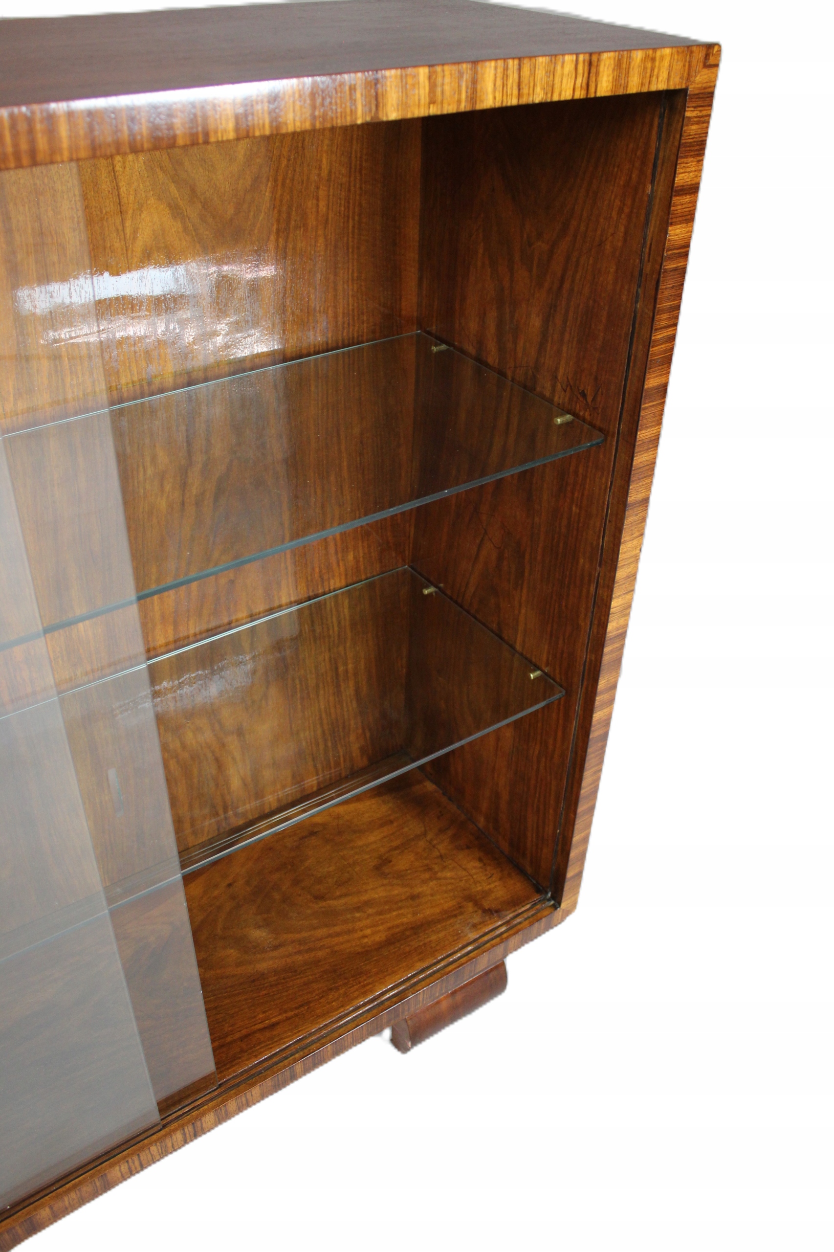 Серванка / витрина / книжный шкаф в стиле арт-деко, примерно 1930-1940 гг. после тщательного обслуживания. Мебель из шпона ореха. Все покрыто шеллаком, дополнительно защищено водостойким покрытием.
