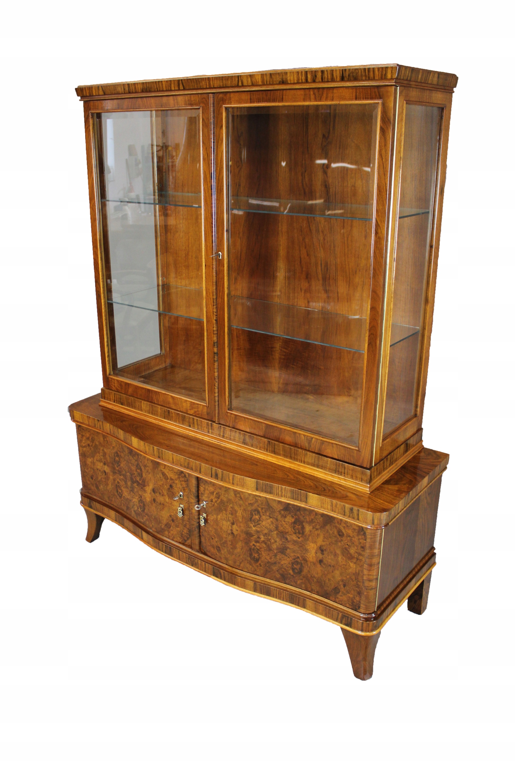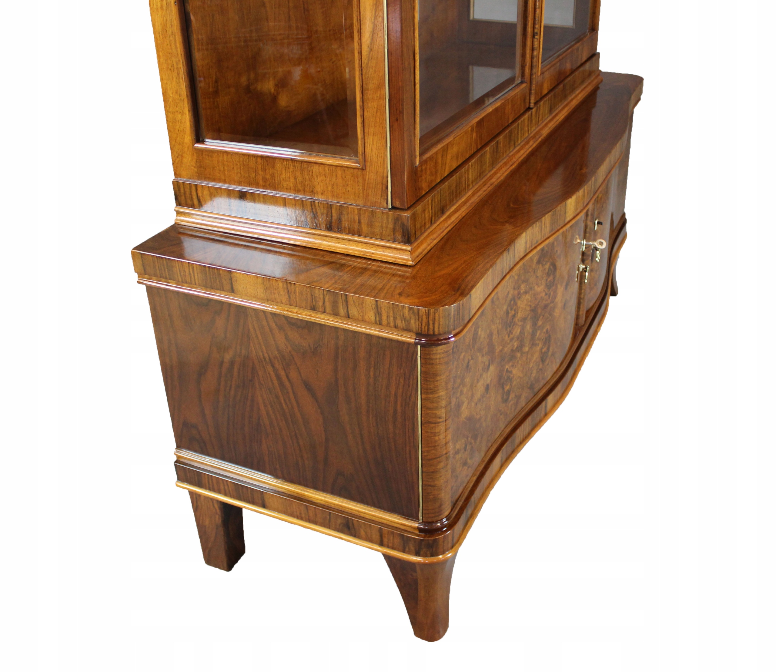 Сердантка / Витринаарт - Деко около 1930 -х годов после тщательного обслуживания. Мебель, разработанная в очень узорчатом европейском орехе. Все, законченное лаком Shellac, дополнительно защищенным водонепроницаемым покрытием
