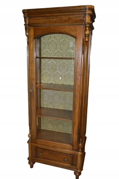 Красивая однодверная витрина. предмет мебели вроде сельвы. отделка под орех, внешняя отделка с имитацией незначительных следов эксплуатации (темные пятна, вмятины), красивая обивка спинки. Витрина со вкусом оформлена и имеет декоративную фурнитуру. элегантный предмет мебели для дизайна интерьера, призванный создать теплую, элегантную и вневременную атмосферу, б/у, в очень хорошем состоянии.