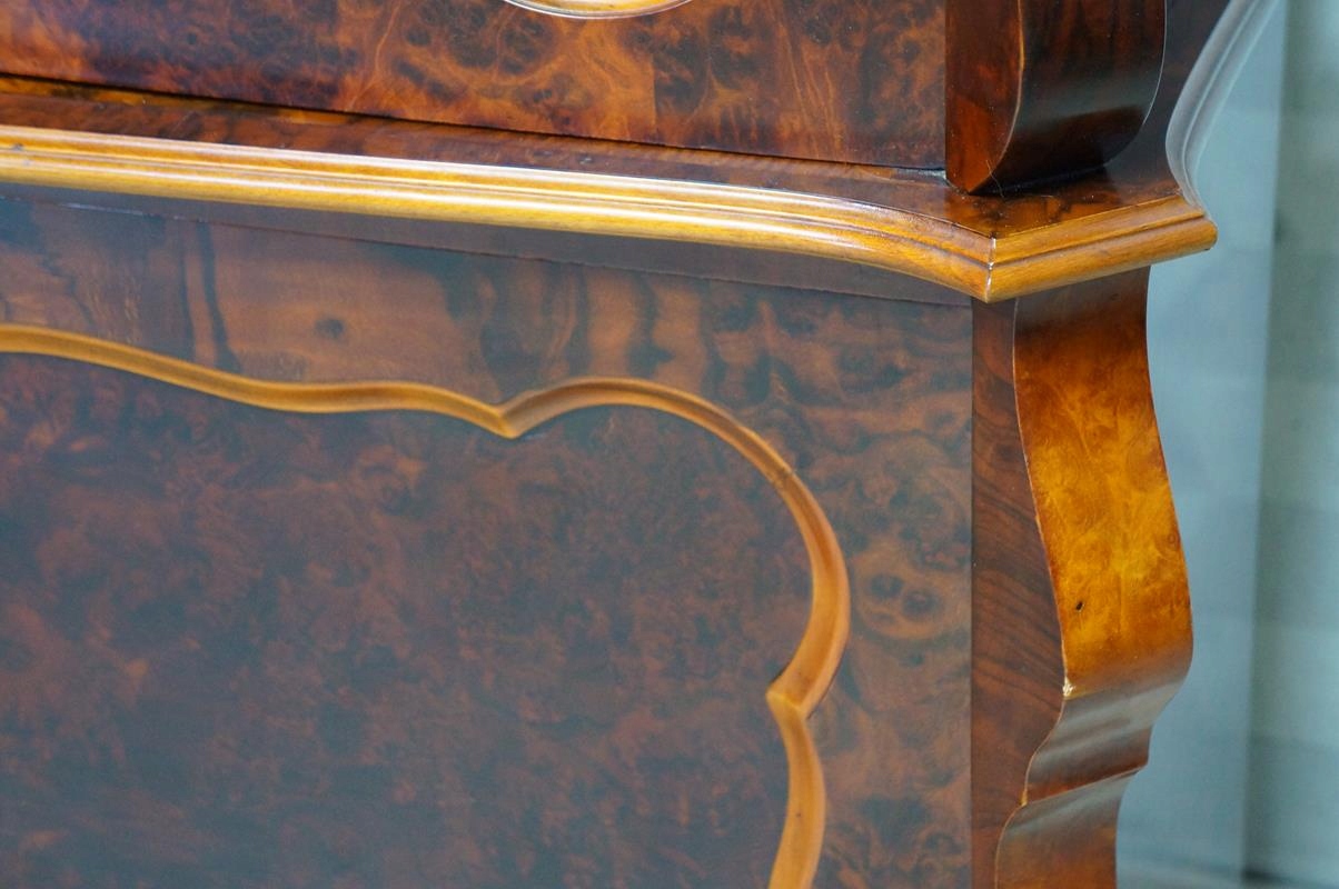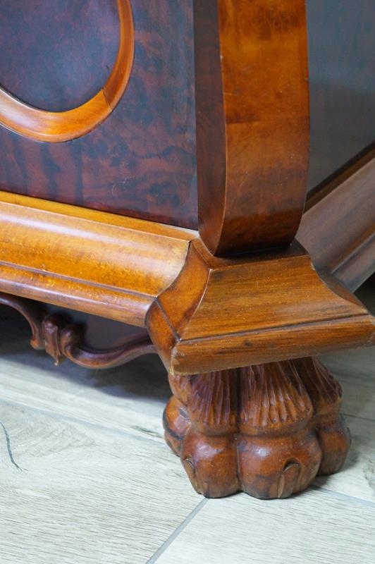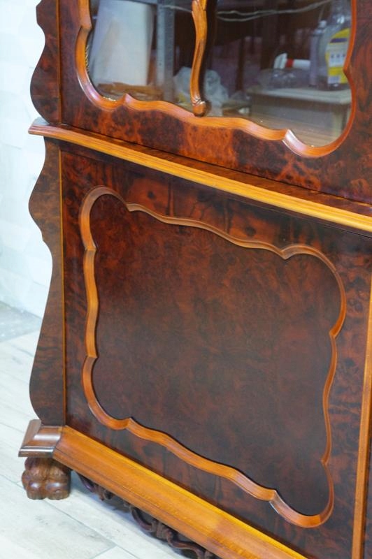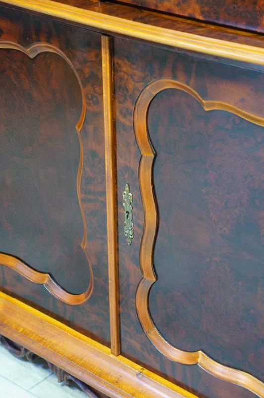 Очаровательный предмет мебели барочных форм из темного шпона красного дерева,