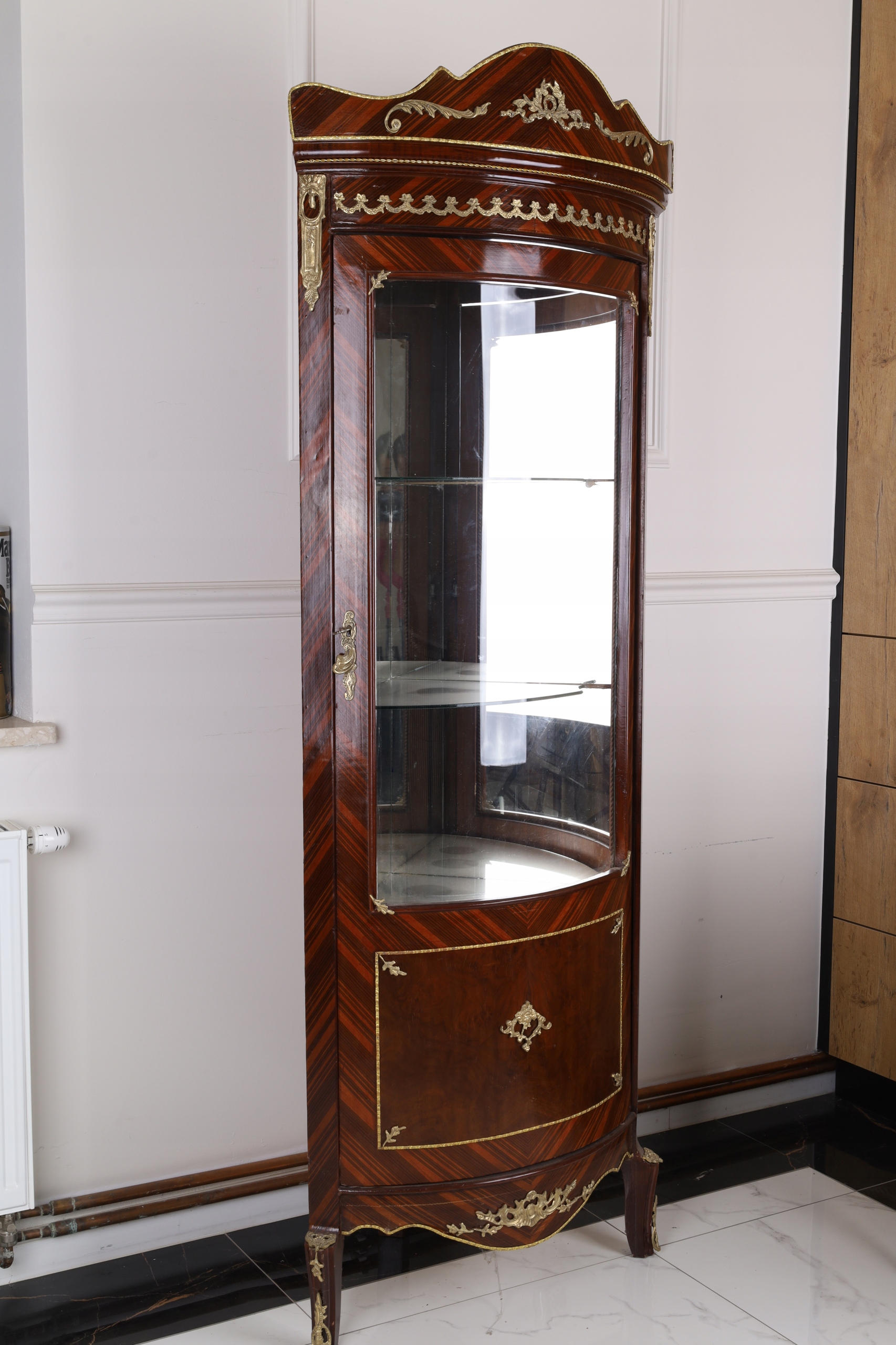УГЛОВАЯ ВИТРИНА - ДЕРЕВЯННЫЙ ШКАФ БАРОККО
