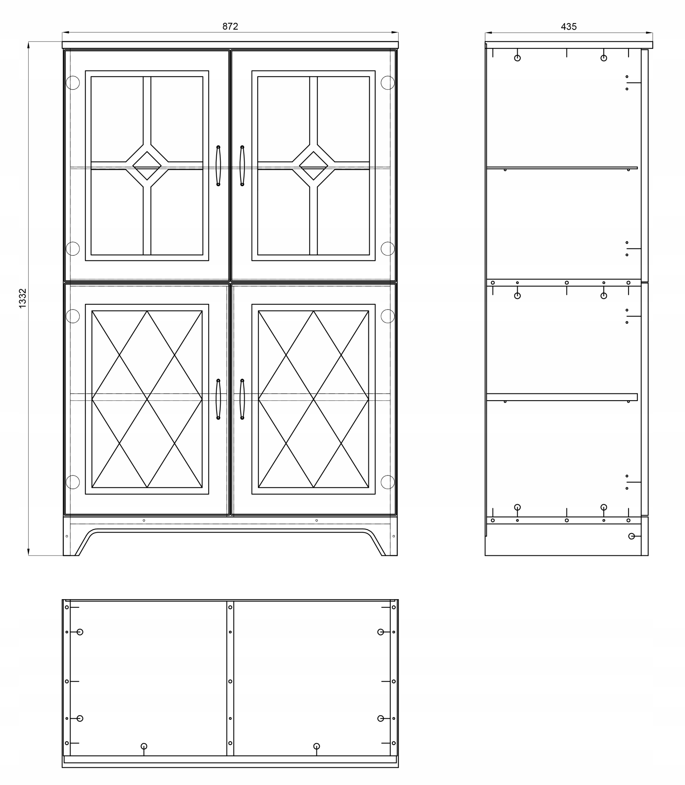 - оснащен четырьмя просторными, запирающимися шкафами (два обычный и два стекла)