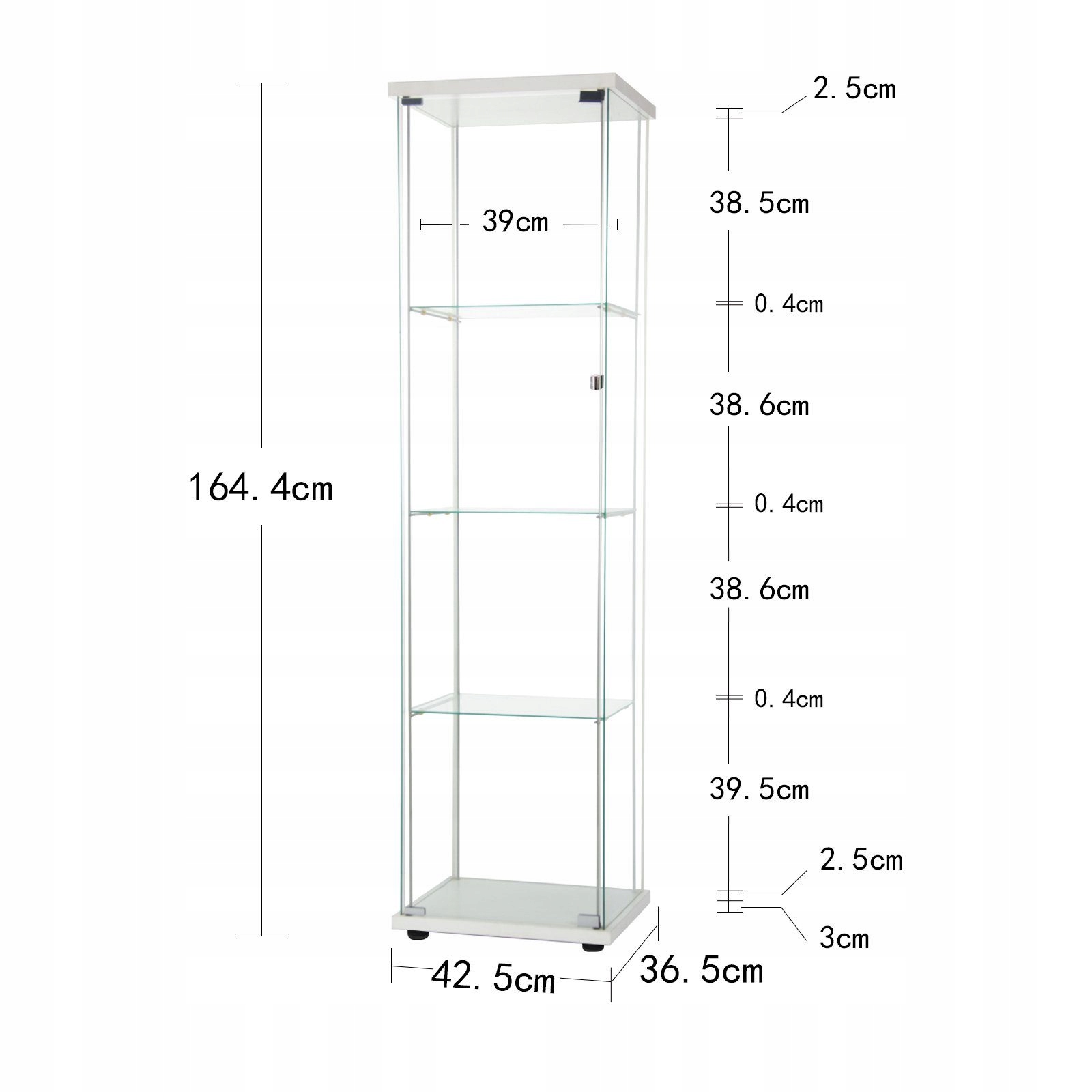 Стеклянный шкаф: Размеры составляют 163 см (высота) х 43 см (длина) х 37 см (ширина), при этом каждое стальное стекло имеет толщину 4 миллиметра. В 4 прочных и стильных коробках можно разместить фотографии, книги, статуэтки, вино и виски. Стеклянная дверь легко открывается и закрывается. Доступен в 3 цветах: белый, черный