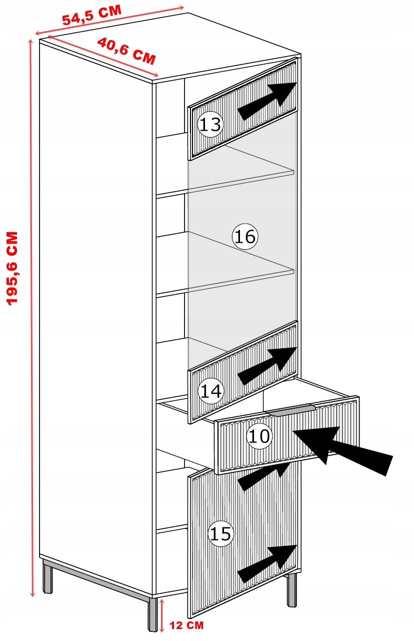 * система открытия >в верхней двери со стеклом