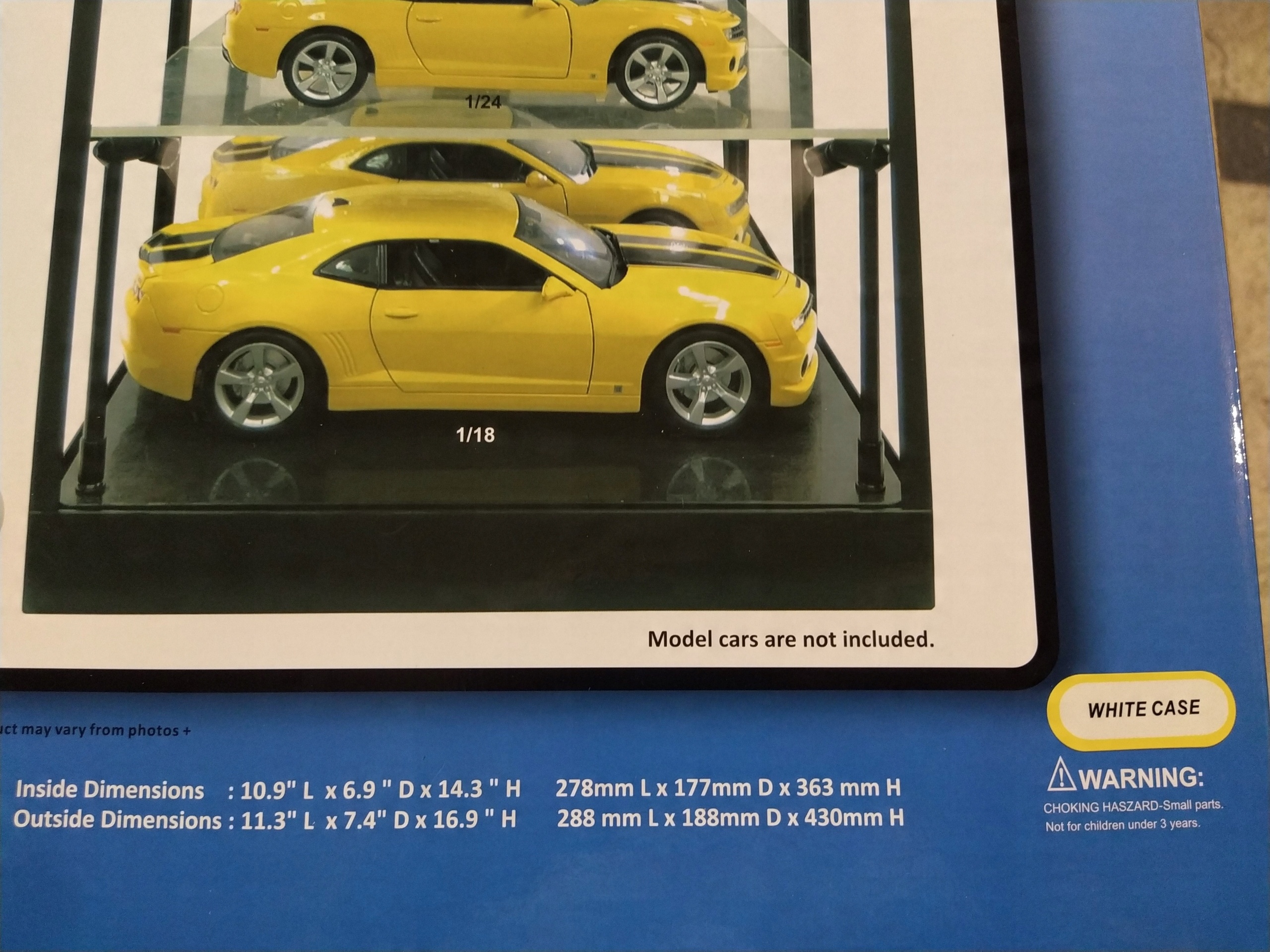 В витрине можно разместить 3 модели в масштабе 1:18 и более моделей в масштабе 1:24, 1:43, 1:64 или меньше.
