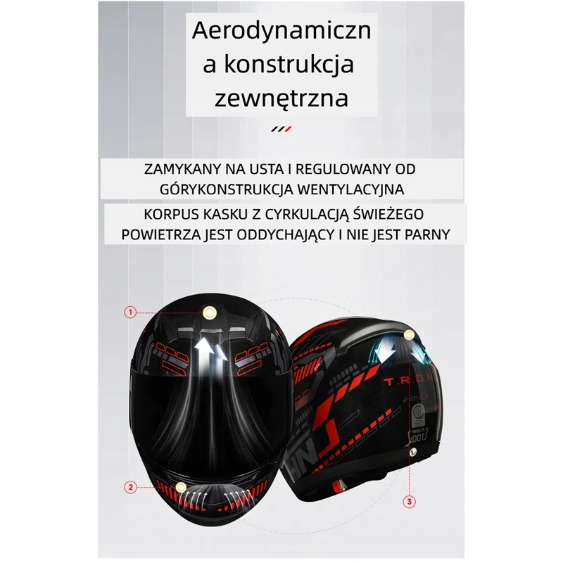 шлем был изготовлен из материалов высочайшего качества. Оболочка из материала ABS. Легкий, а также устойчив к повреждению, идеально нейтрализует шум, вызванный ветром. Шлем удобен, внутренняя часть, изготовленная из анти -аллергического и дышащего материала, заставляя голову потеть в меньшей степени.