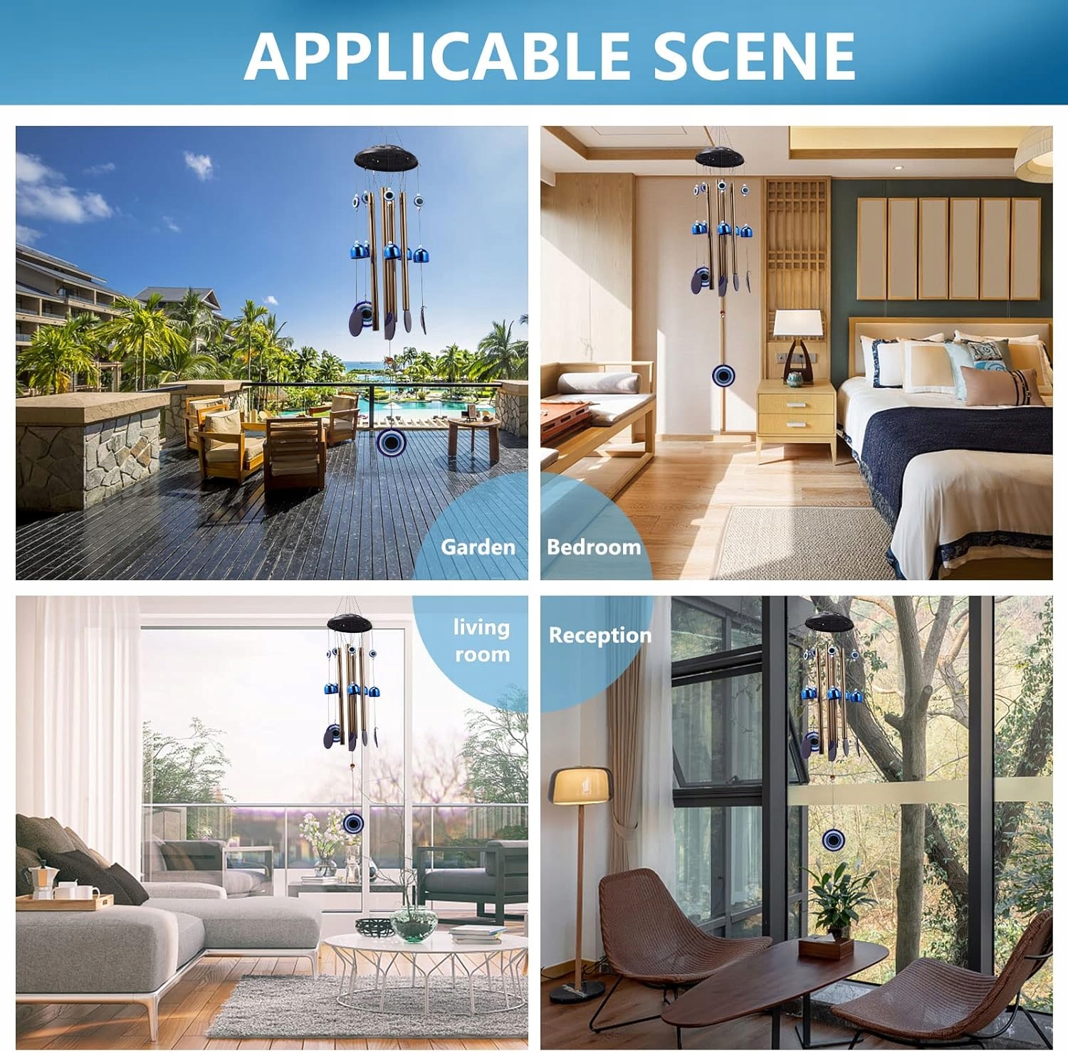 YEBON Турецкий синий амулет от сглаза с колокольчиками для украшения дома и сада, подарок на удачу