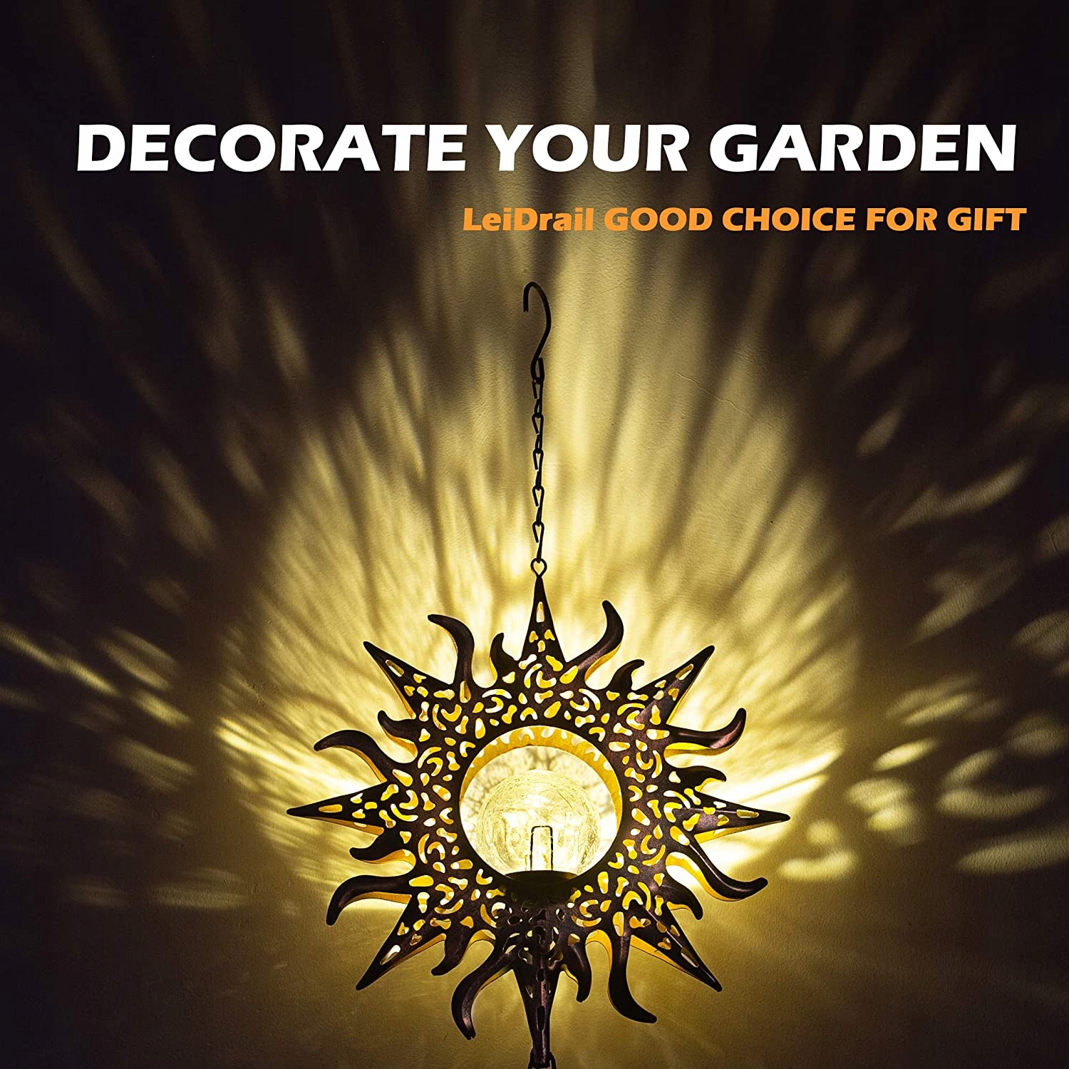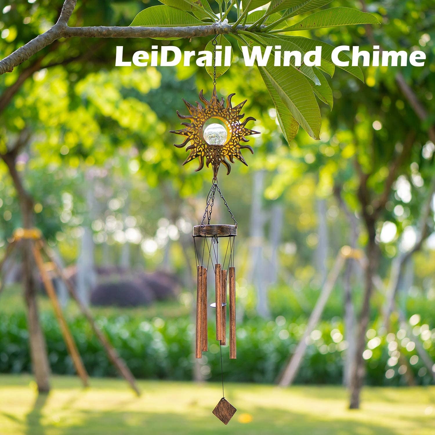 Leidrail Солнечный светодиодный светодиодный световой сигнал от солнечного ветра. Наружный садовый водонепроницаемый металл Уникальный подвесная мобильная лампа Солнечная ветроэнергетика для пасхального дворика с крючком