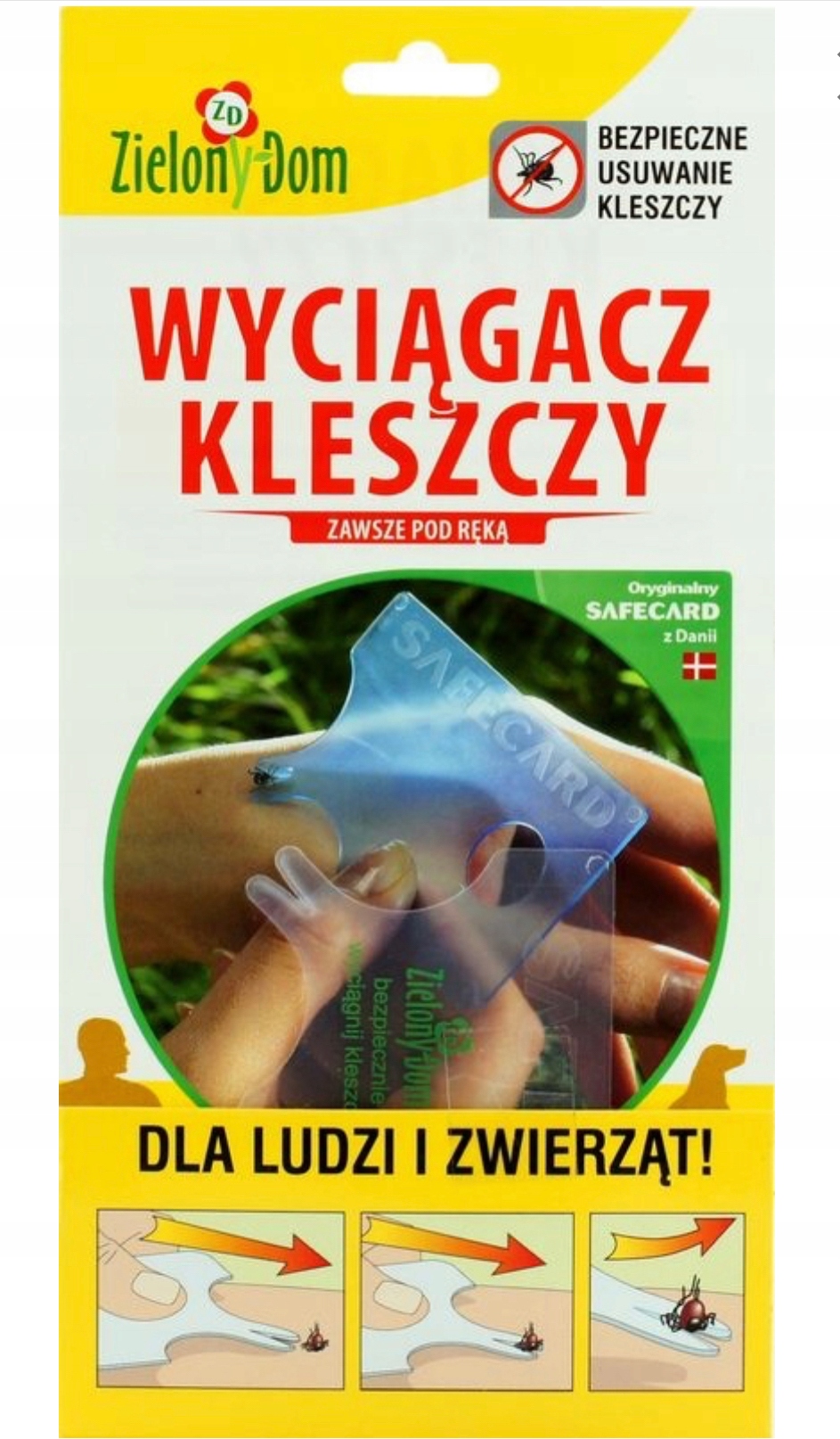 SafeCard - новинка прямо из Дании. Этот простой в использовании и эффективный гаджет позволит вам безопасно удалить клеща как у людей, так и у животных. Обычно известные способы избавиться от этих паразитов часто связаны с негативными последствиями. Существует риск того, что мы оставим часть насекомых в коже или причиной того, что он внесет в наш организм вредные патогены, которые могут вызвать опасные заболевания, такие как болезнь Лайма, менингит или паралич лица. С SafeCard мы сведем к минимуму риск заражения. Избавьтесь от тика быстро, безопасно и эффективно! Правильно профилированная форма позволяет удалить клеща точно, безболезненно и без применения силы, и, что наиболее важно эффективно. Просто скользите насекомое медленным движением между профилированными плоскогубцами и тщательно поднимите карту. Таким образом, мы будем безопасно вытащить паразит из кожи. Надежный способ к клещам! Благодаря этому у него есть вдумчивая форма, которая позволяет клещи вытащить из любого места на теле. Кроме того, меньший разрезанный офф позволяет легко удалить укус после укуса пчелы. Продукт имеет размеры традиционной платежной карты, поэтому ее можно легко хранить в вашем кошельке. С этим всегда с нами мы сможем быстро вмешаться, когда возникнет необходимость
