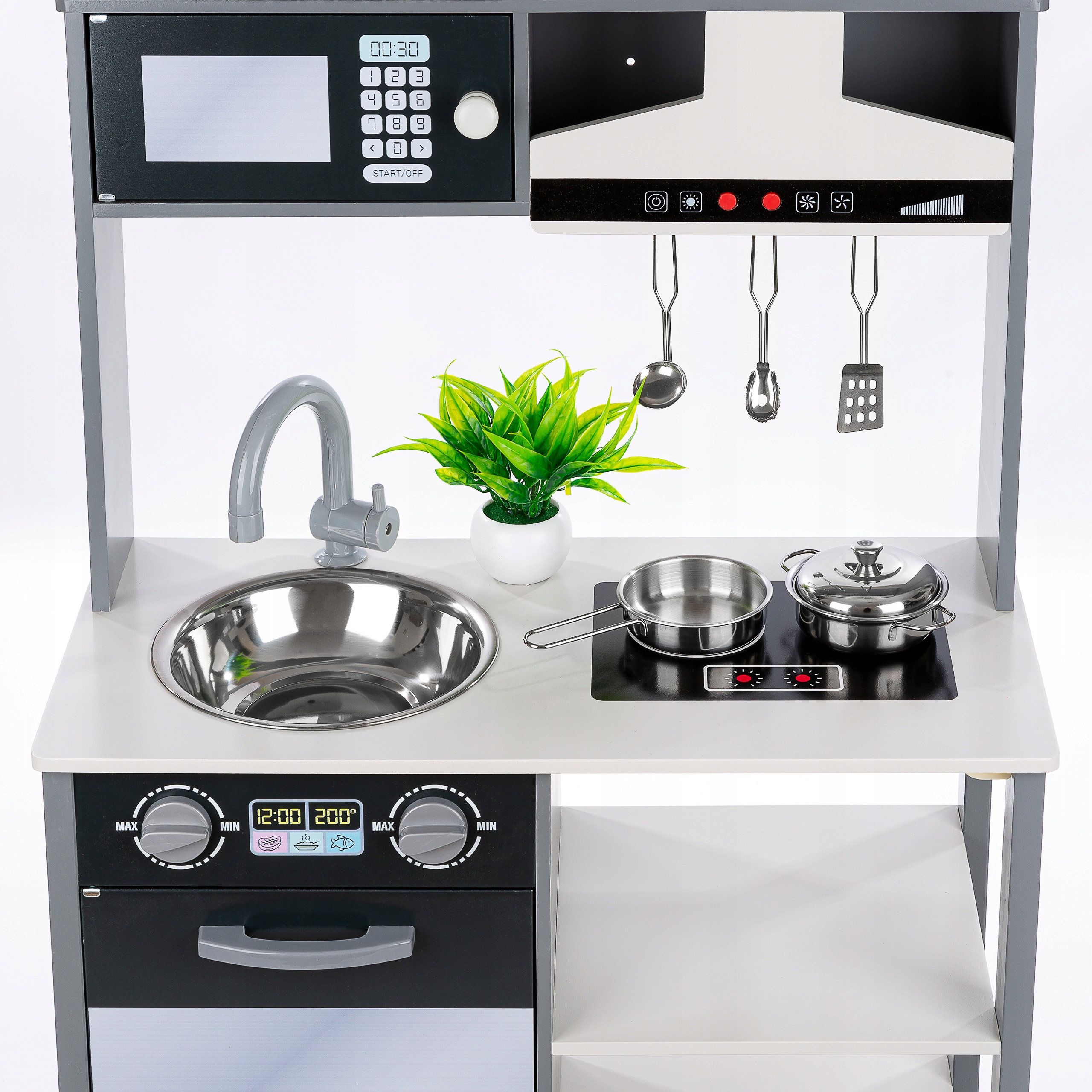 Игра с деревянной кухней помогает развивать творческие способности, воображение и навыки ручного труда.