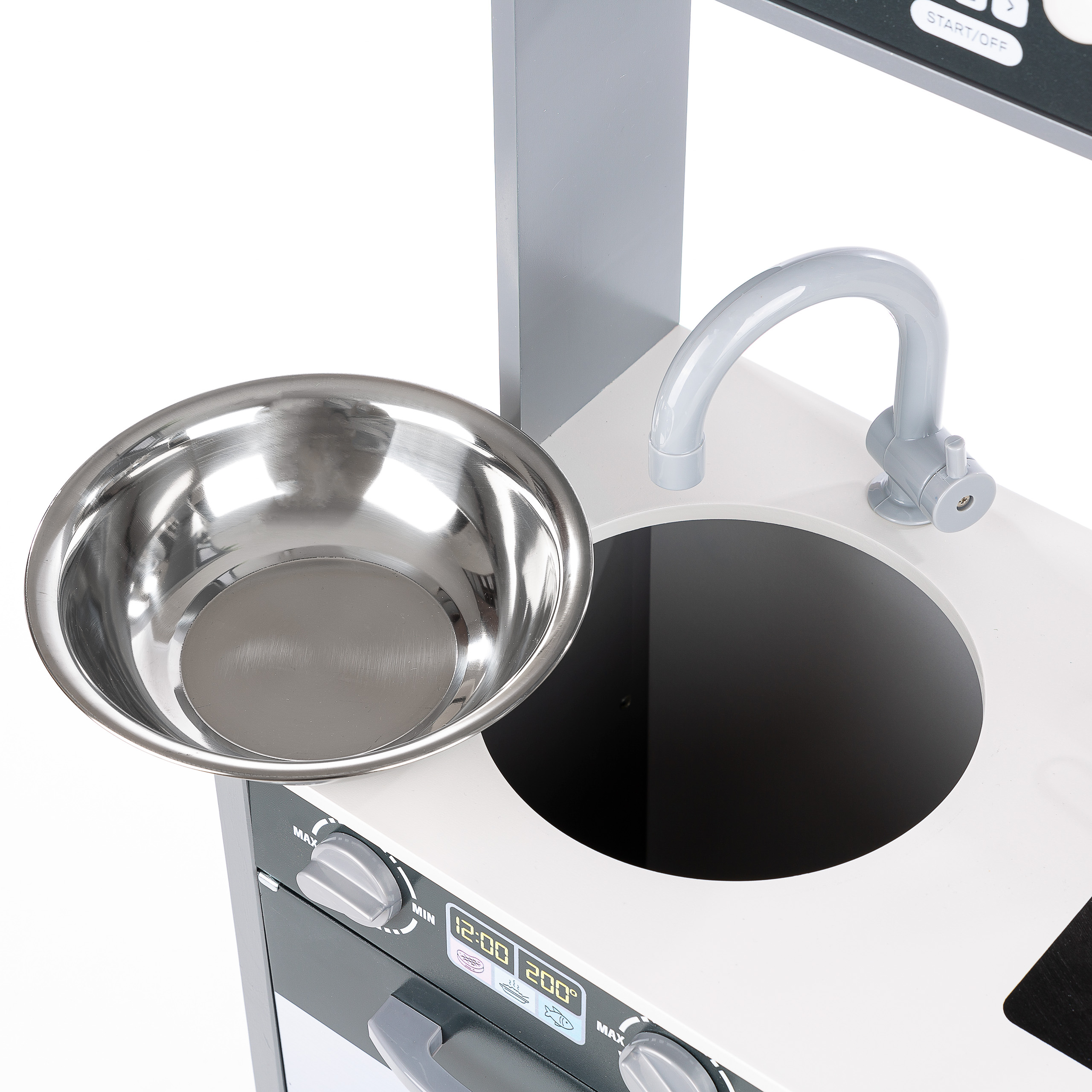 Интересная и увлекательная игра для детей, которые охотно подражают действиям взрослых и могут смело играть маленькими поварами. Интересный и современный дизайн, а также приятные цвета – это лишь некоторые особенности этой кухни. Подвижные ручки, которые щелкают при переключении. Все шкафчики открываются. Кухня для будущих кулинарных мастеров!