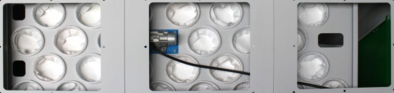 • Автоматическая вибрация система очистки тканей для фильтрации – во время перерывов и во время работы фильтров позволяет постоянно контролировать правильность работы.