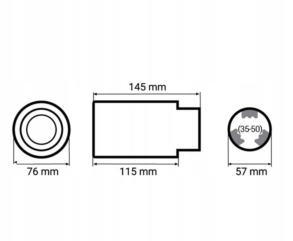 - Диаметр монтажа: 35 - 50 мм (диаметр исходной выхлопной трубы, на которой можно установить кончик)