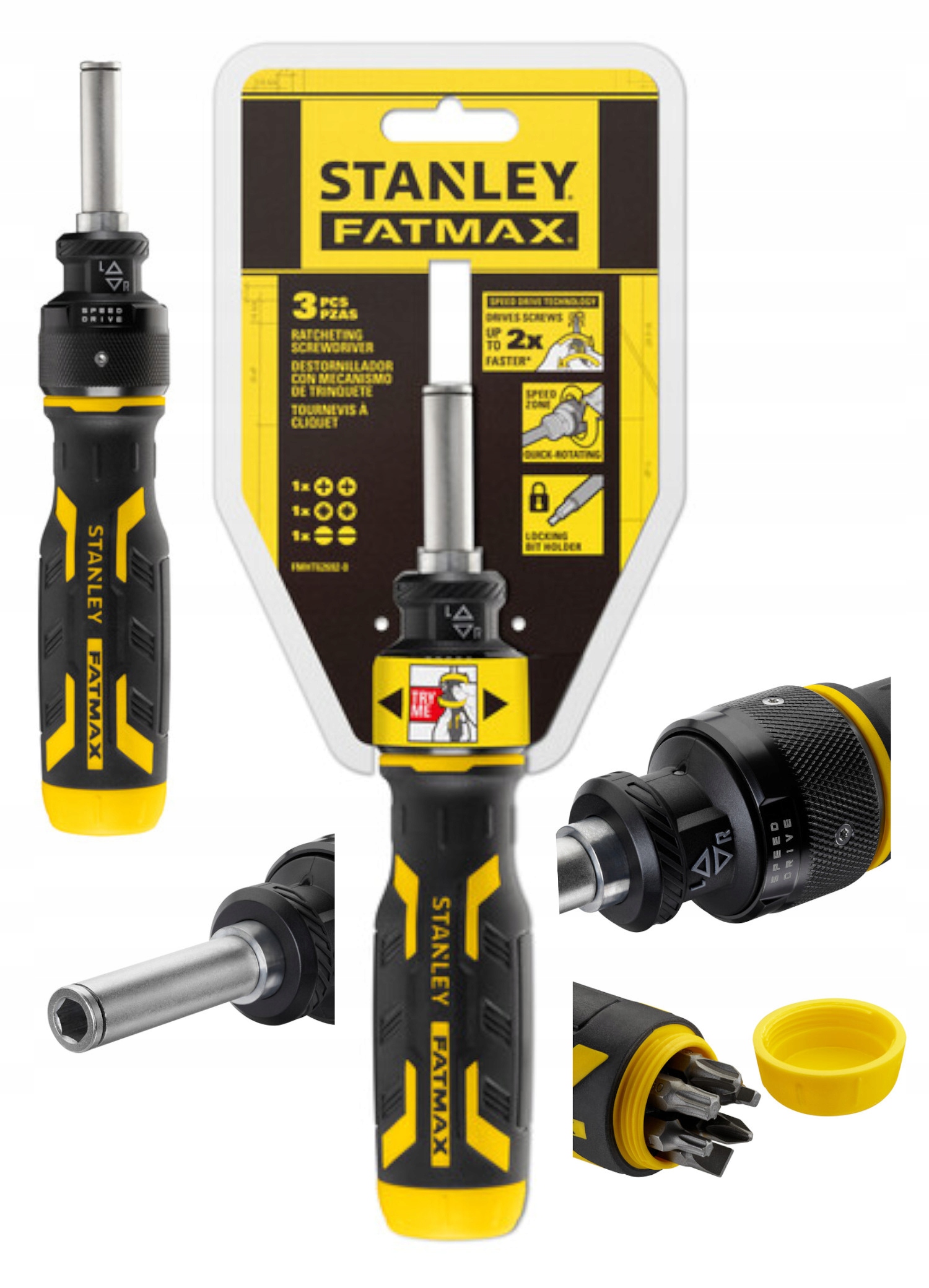 TТехнология Speed Drive позволяет заворачивать винты в два раза быстрее по сравнению со стандартной многобитной отверткой с храповым механизмом STANLEY ® FATMAX ® (FMHT0-62690)