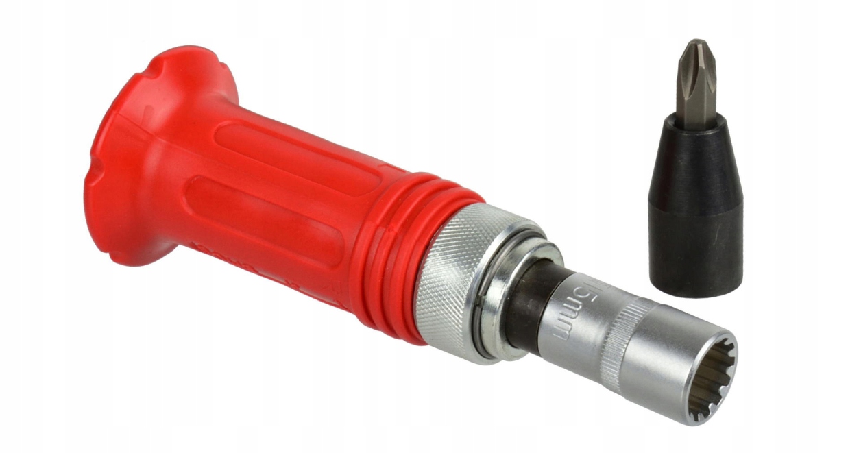 Ударная отвертка, благодаря возможности установки любой головки 1/2 дюйма, становится полезным инструментом в каждой профессиональной мастерской, а также в домашнем гараже. Металлический штифт фиксируется резиновым наконечником с защитным воротником. наша рука против болевых ударов молотком.
