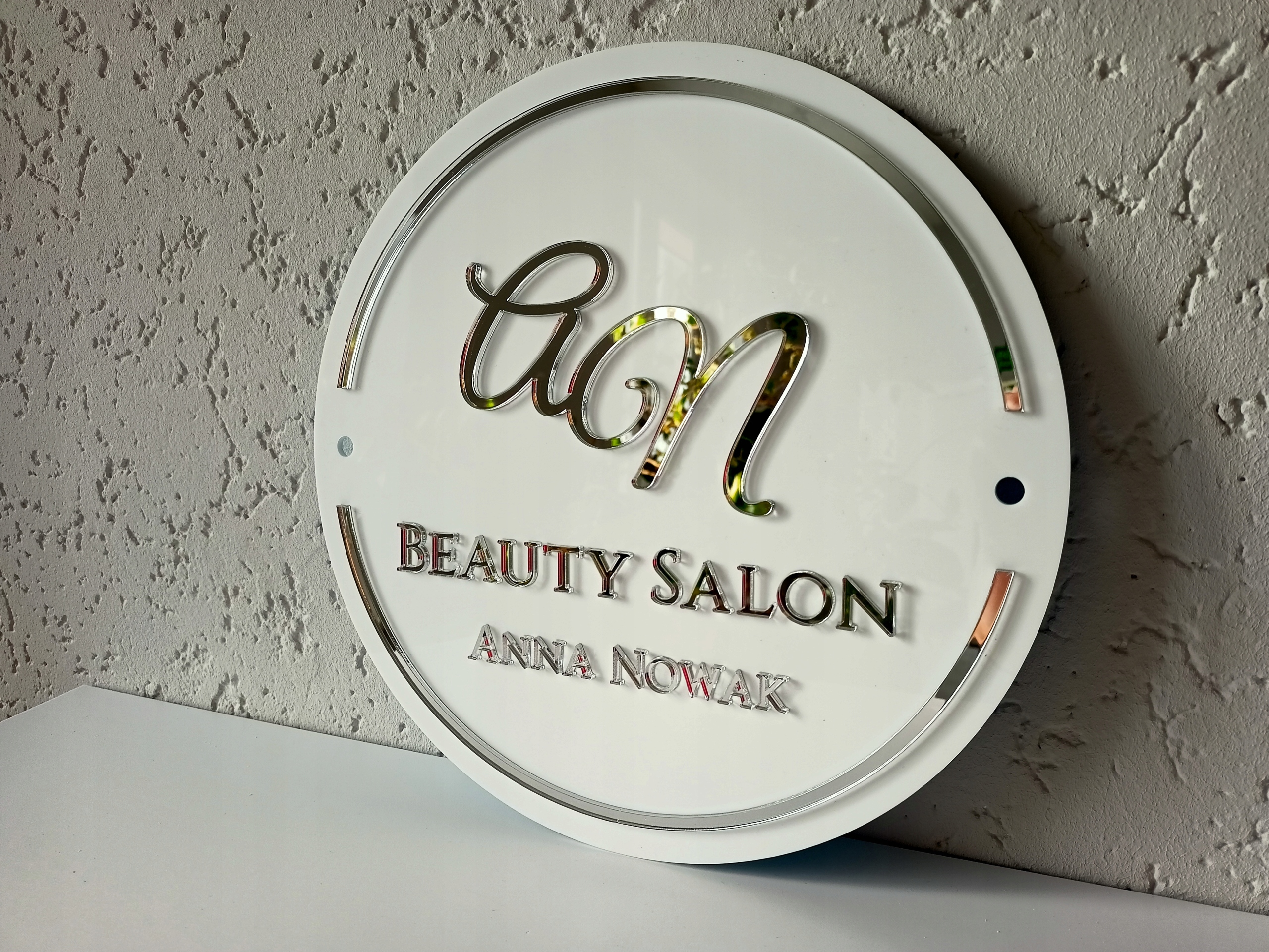 Вывеска в стиле гламур с зеркальными надписями, диаметр 40 см.
