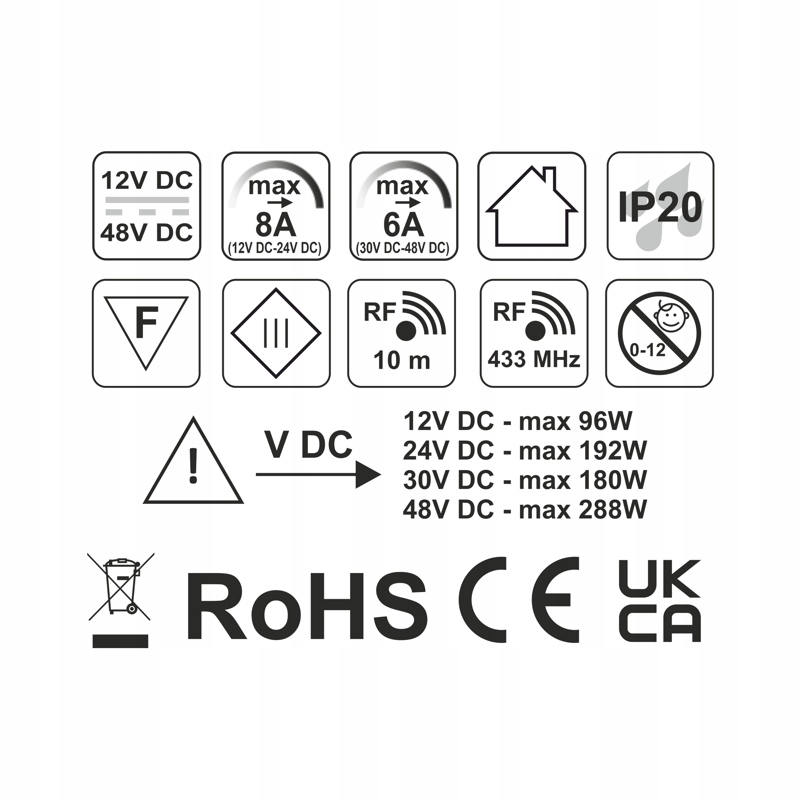 VIVO LED контроллер 12В - 48В МОНО + беспроводной 4-зонный радиочастотный пульт БЕЛЫЙ