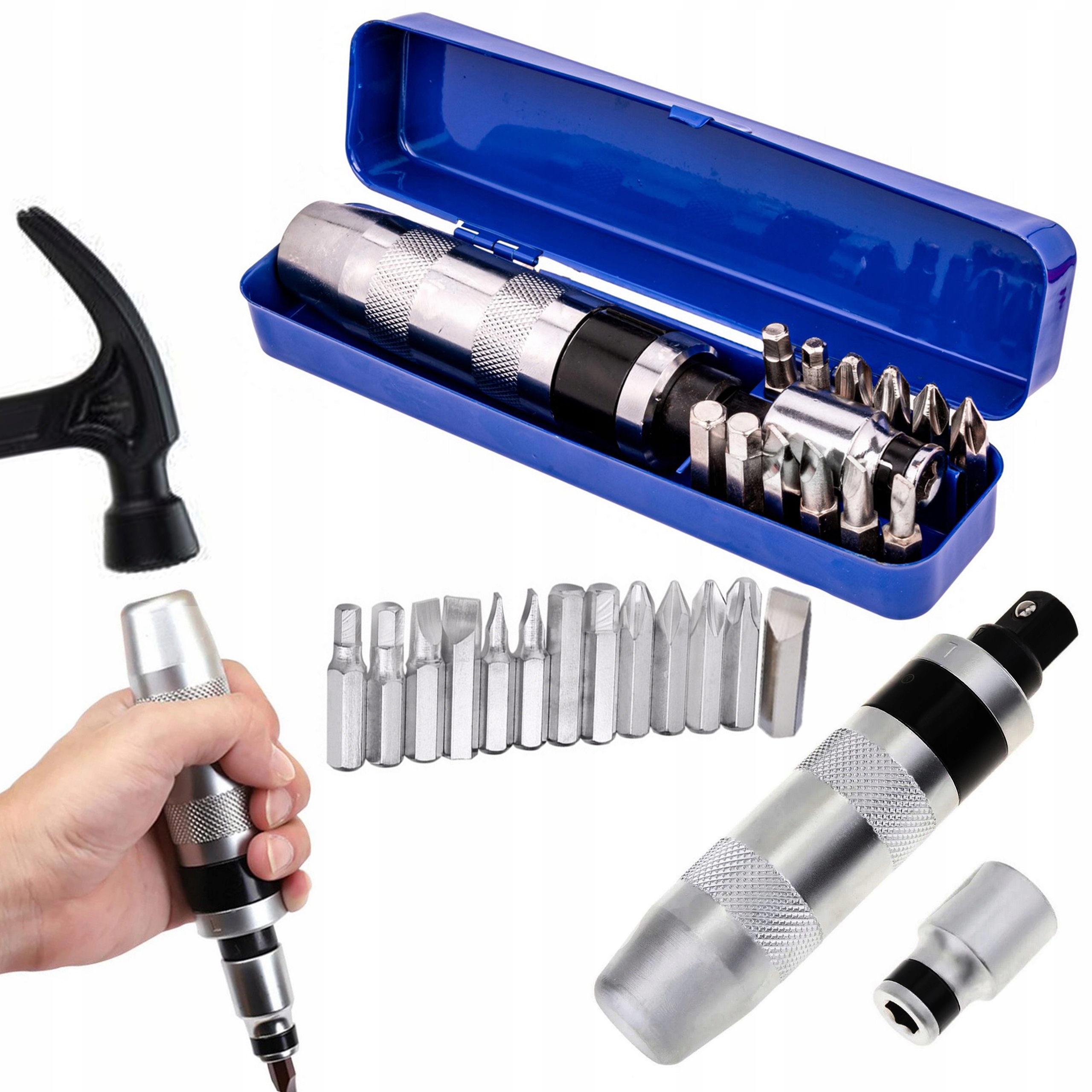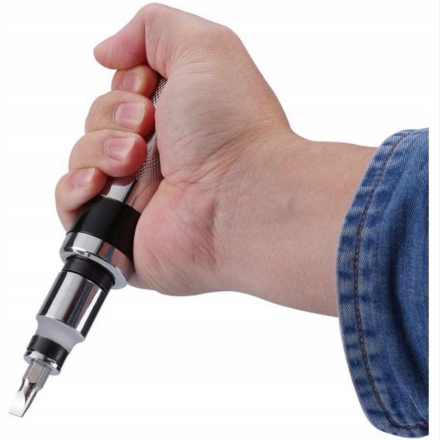 Отвертка ударного действия применяется для отвинчивания и ослабления застрявших или туго затянутых болтов, винтов и гаек. Для работы он использует преобразование кинетической энергии удара молотка во вращательное движение кончика отвертки. Работу обеспечивает точный червячный механизм с резьбой с очень большим шагом.