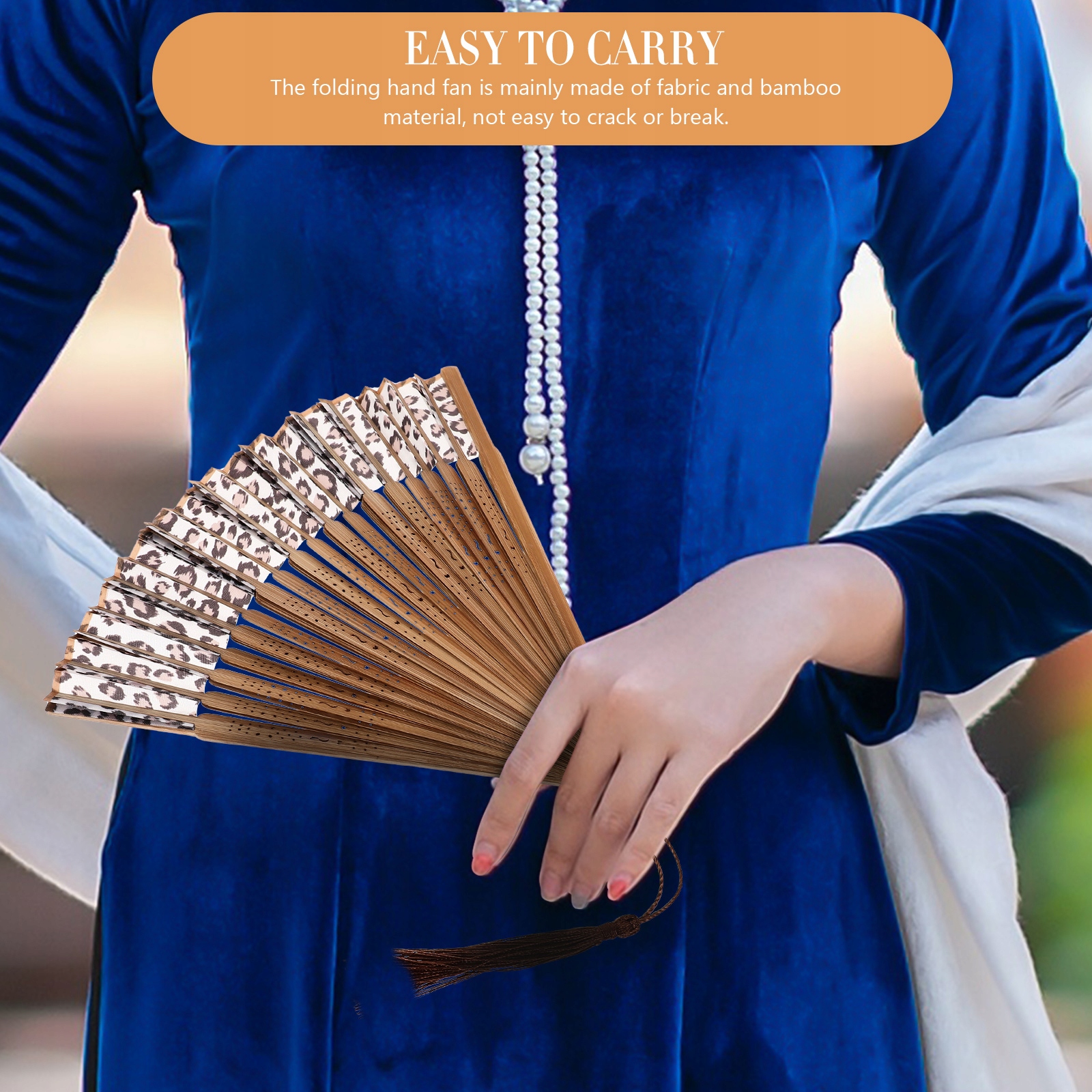 Складной ручной веер в основном изготовлен из ткани и бамбука, его нелегко сломать, он очень прочный.