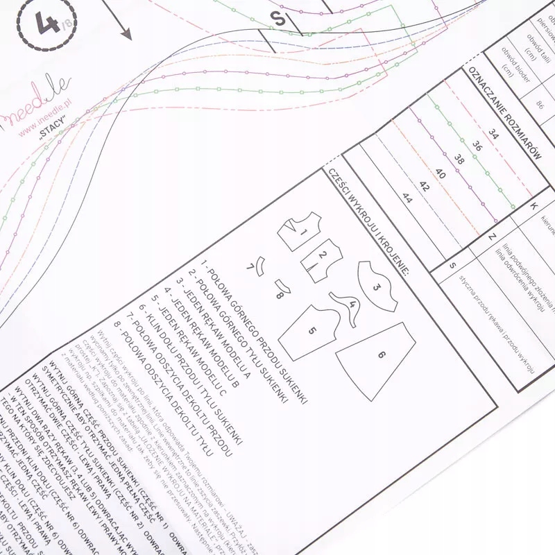 Выкройка спортивных штанов размещена на большом листе бумаги с четко прорисованными размерами. Каждый размер отмечен отдельным цветом, поэтому найти и отследить нужный вам очень легко. Помимо выкройки, на том же листе бумаги вы найдете очень полезные советы, например, как снять мерную ленту со своей фигуры и правильно подобрать размер одежды, которую вы планируете сшить. Там же вы найдете информацию о том, как нарисовать выкройку, в каком порядке кроить ткань и как сшить выбранную модель одежды.