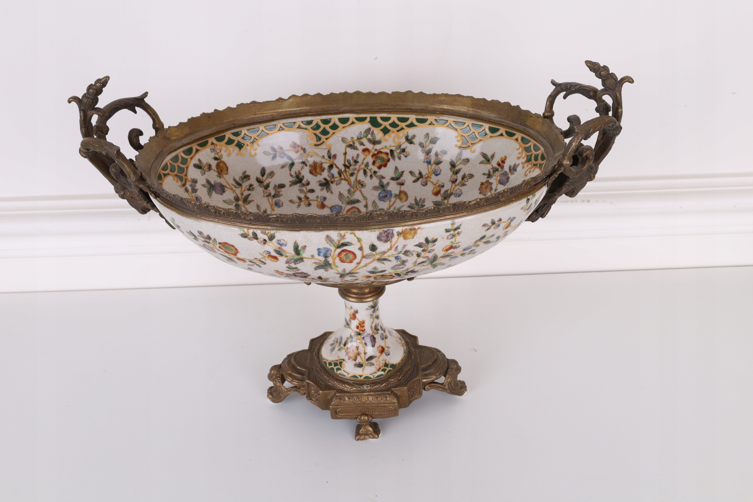 - Фарфоровая тарелка, украшенная бронзой.