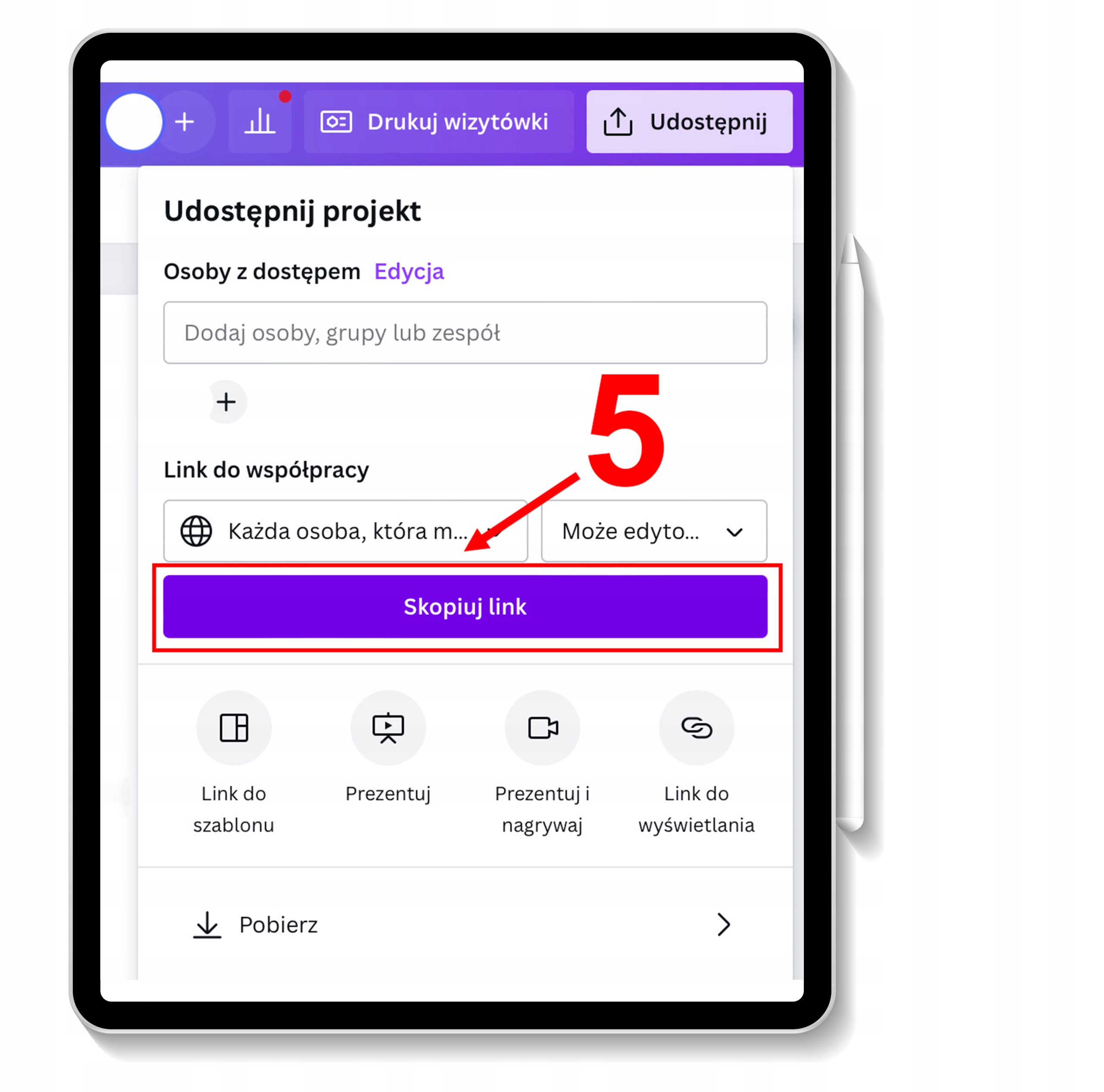 1️⃣ Нажмите кнопку «ПОДЕЛИТЬСЯ» в мастере CANVA (правый верхний угол страницы)
