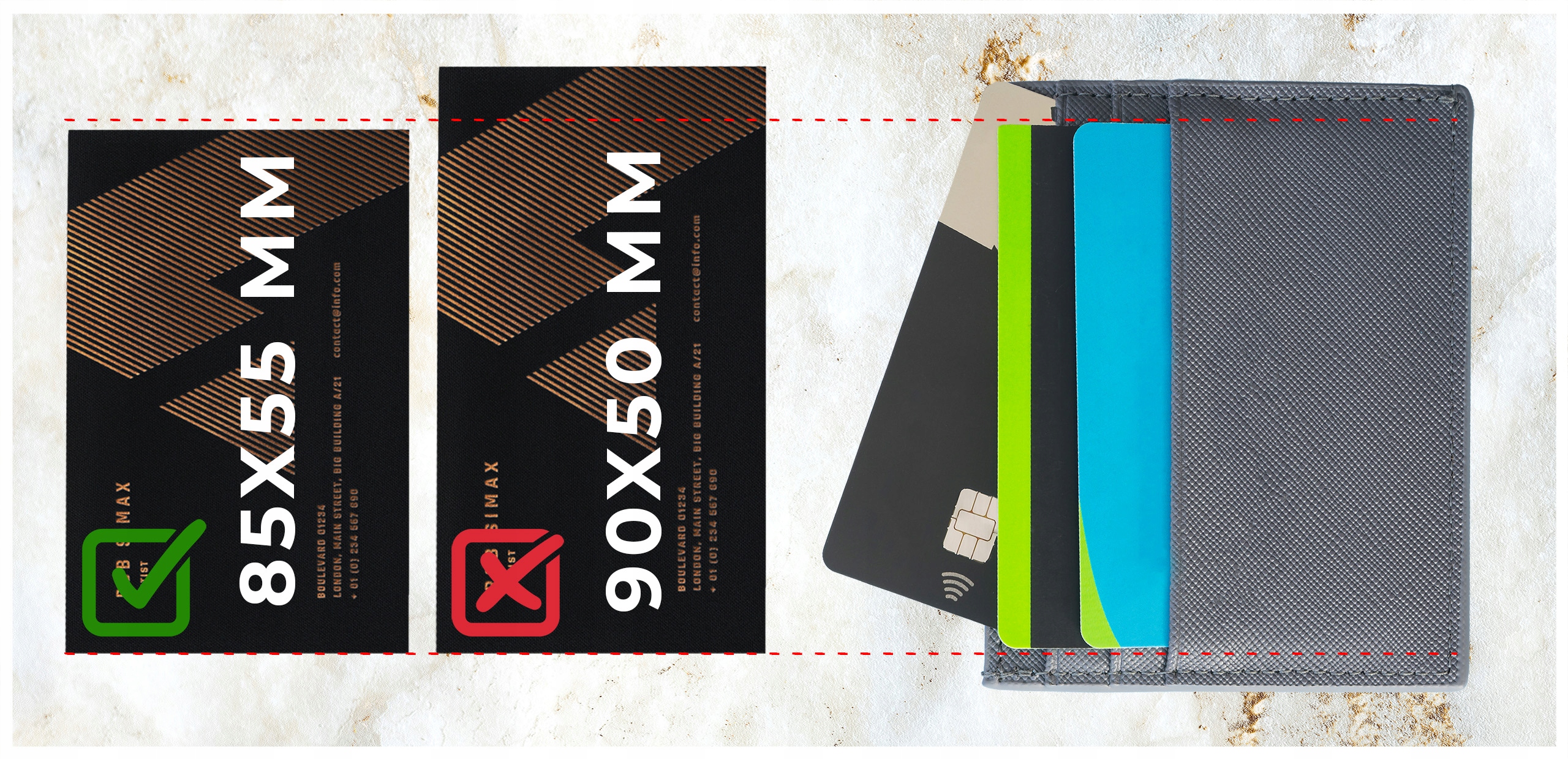 Заметили, что стандартные визитки размером 90x50 мм не всегда помещаются в кармашки для карточек кошелька?