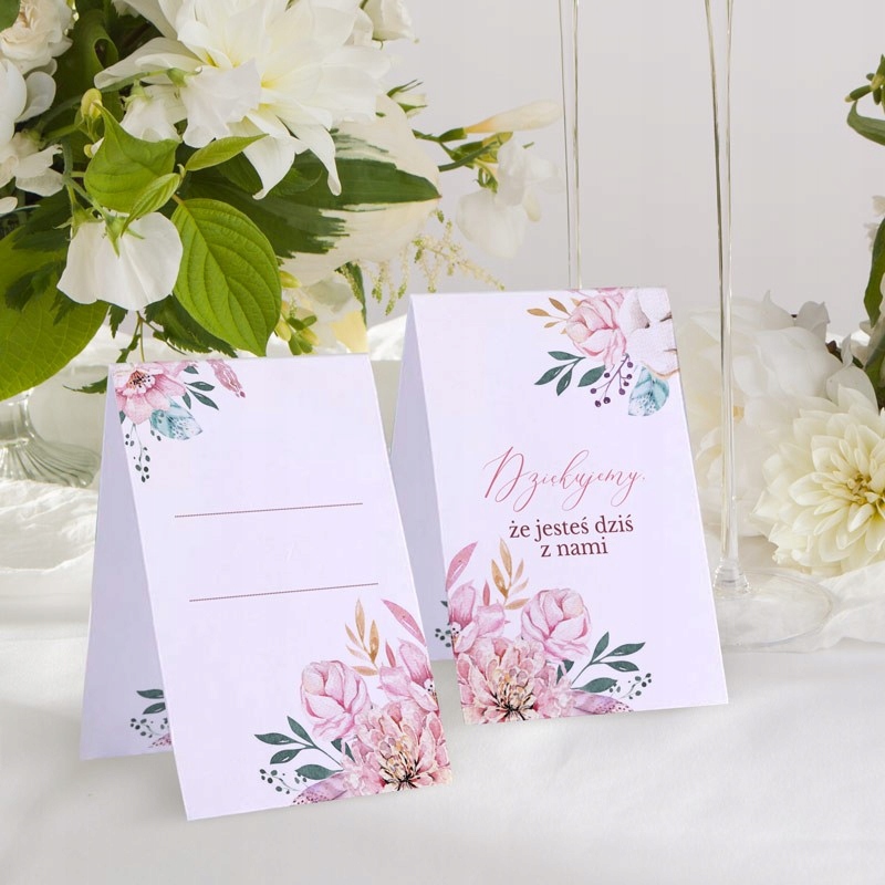 - с одной стороны визитки имеют цветочный принт и надпись «Спасибо, что вы сегодня с нами», с другой есть место для написания имен гостей.
